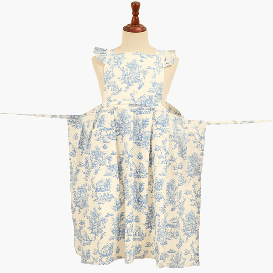 Vintage Cotton Apron with Puffed Shoulder Straps – Blue Toile