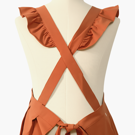 Vintage Cotton Apron with Puffed Shoulder Straps – Warm Brown
