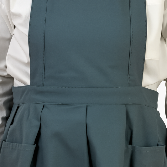 Vintage Cotton Apron with Puffed Shoulder Straps – Deep Green