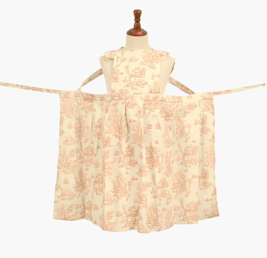 Vintage Cotton Apron with Puffed Shoulder Straps – Sepia Toile