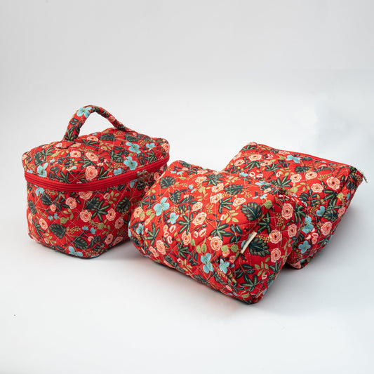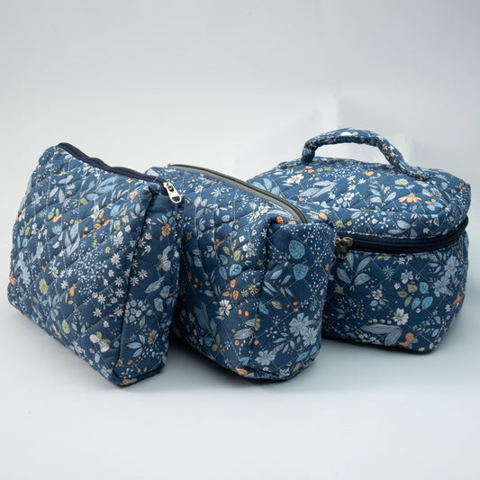 Floral Quilted Makeup Small Pouch Travel Toiletry Organizer