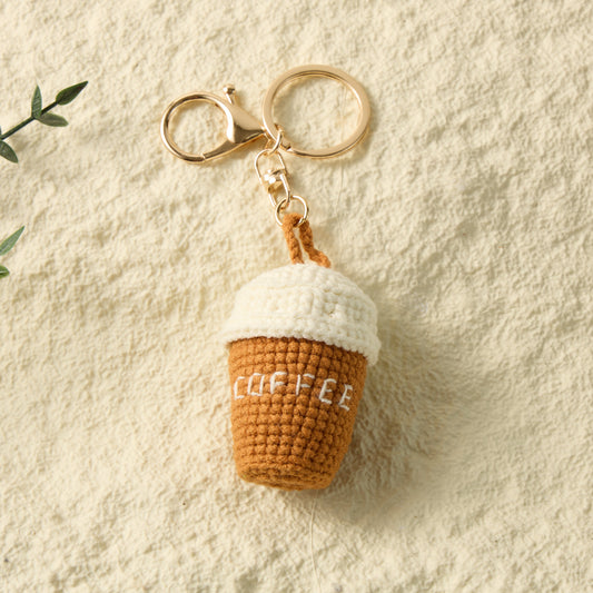 Hand-Knitted Coffee Cup Yarn Keychain for Warmth and Style