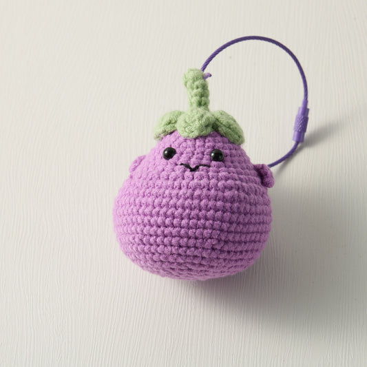Plum Purple: Hand-Knitted Eggplant Keychain for a Touch of Elegance