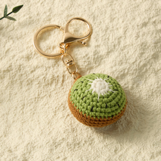 Hand-Knitted Kiwi Fruit Yarn Keychain for a Refreshing Twist