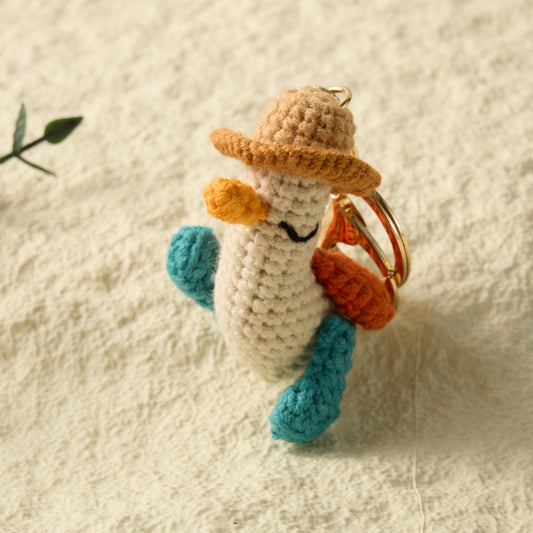 Hand-Knitted Duck Yarn Keychain for a Quirky Charm