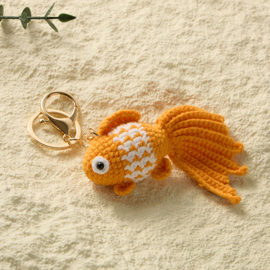 Hand-Knitted Goldfish Yarn Keychain for a Splash of Whimsy!