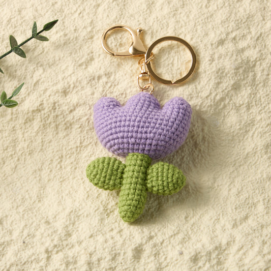 Hand-Knitted Tulip Flower Keychain for a Floral Touch