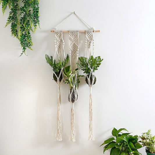 Macrame Cotton Rope Plants Hanging Pots Holder Stand - Set 3