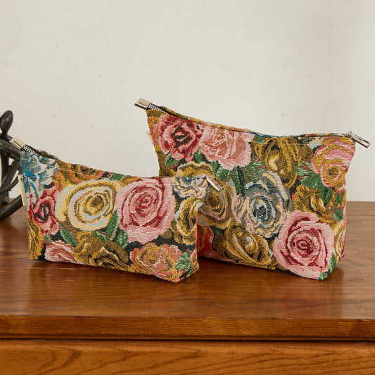 Rose Floral Print Toiletry / Makeup Bag - Travel-Friendly Cosmetic Bag