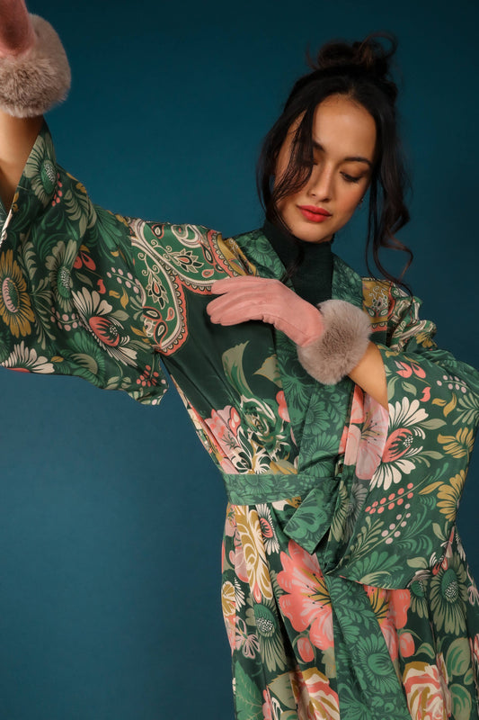 Powder Design inc - Luxe Folk Art Floral Kimono Gown - Fern