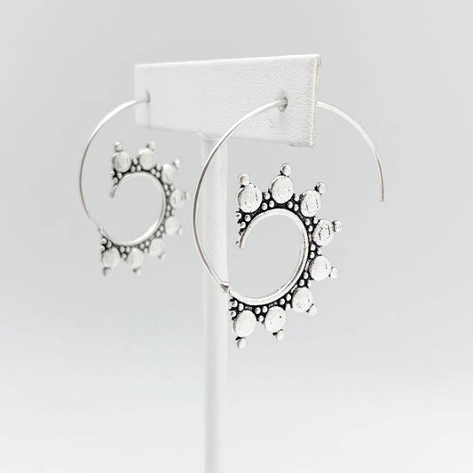 Anju Jewelry - Tanvi Collection Earrings - Silver Circles/Dots Open Hoop