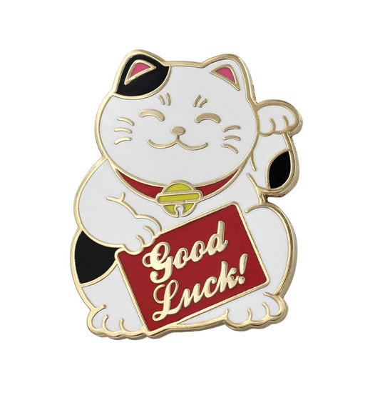 REAL SIC Lucky Cat Pin - Good Luck Waving Cat Enamel Pin