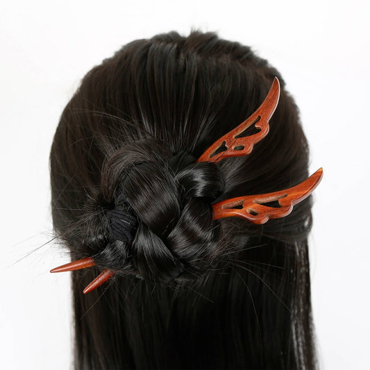 Red Sandalwood Hair Sticks for Women – Set of 2 (Wings)