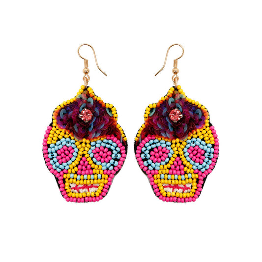 Statement Beaded Drop Earring For Halloween - Sugar Skull