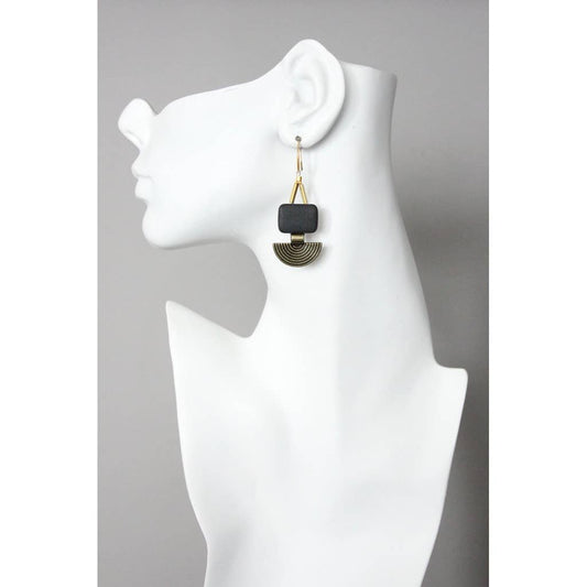 David Aubrey Jewelry - XINE12 Black agate geometric earrings
