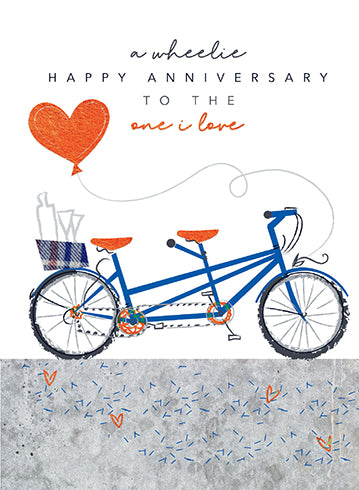 SHOP NOW BRAND: CARTE Greeting Card type and title: ANNIVERSARY CARD TANDEM BIKE GREETING: Love our adventures together! SKU: CC1949