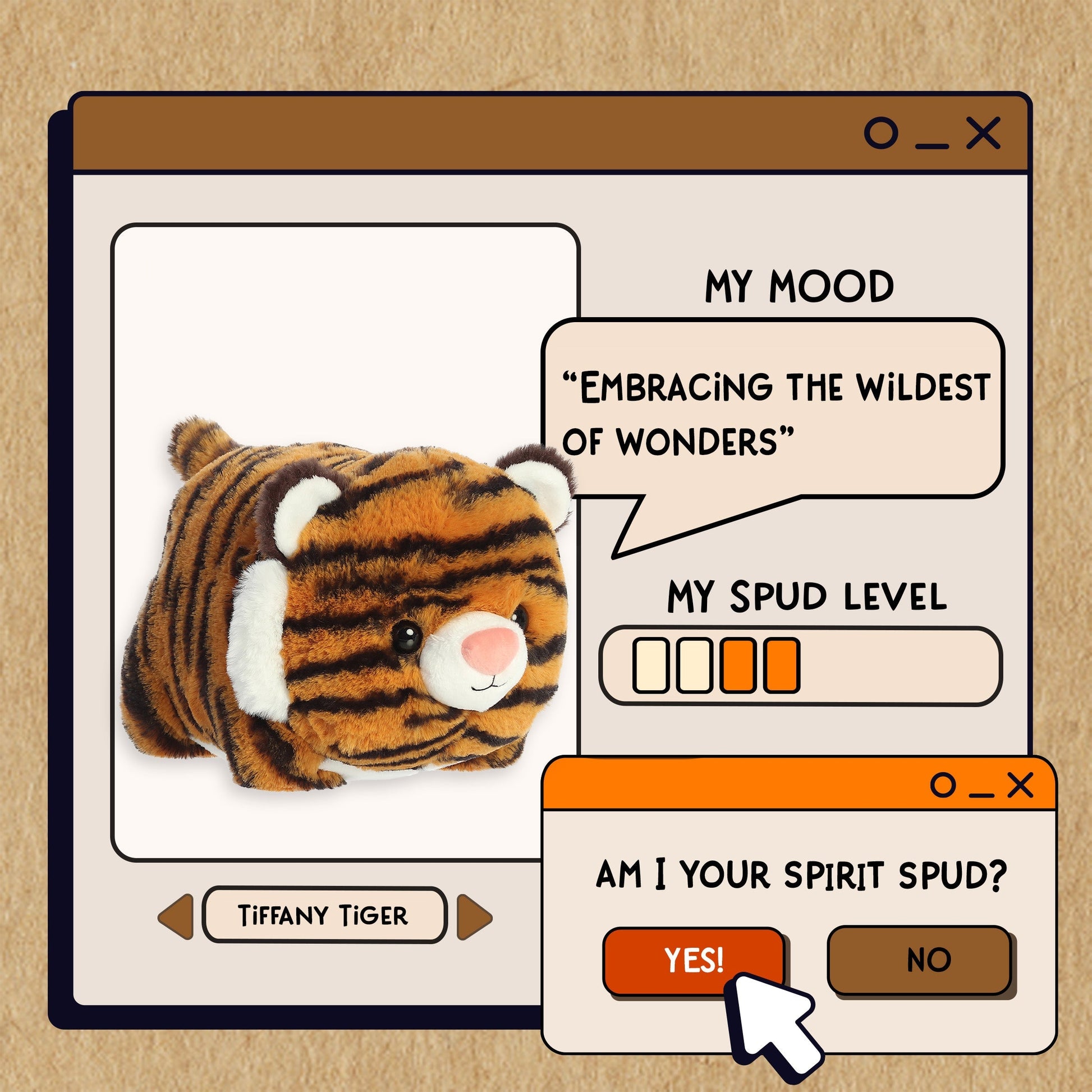 - This adorable tiger plush is designed to be similar to the shape of a potato (spud)