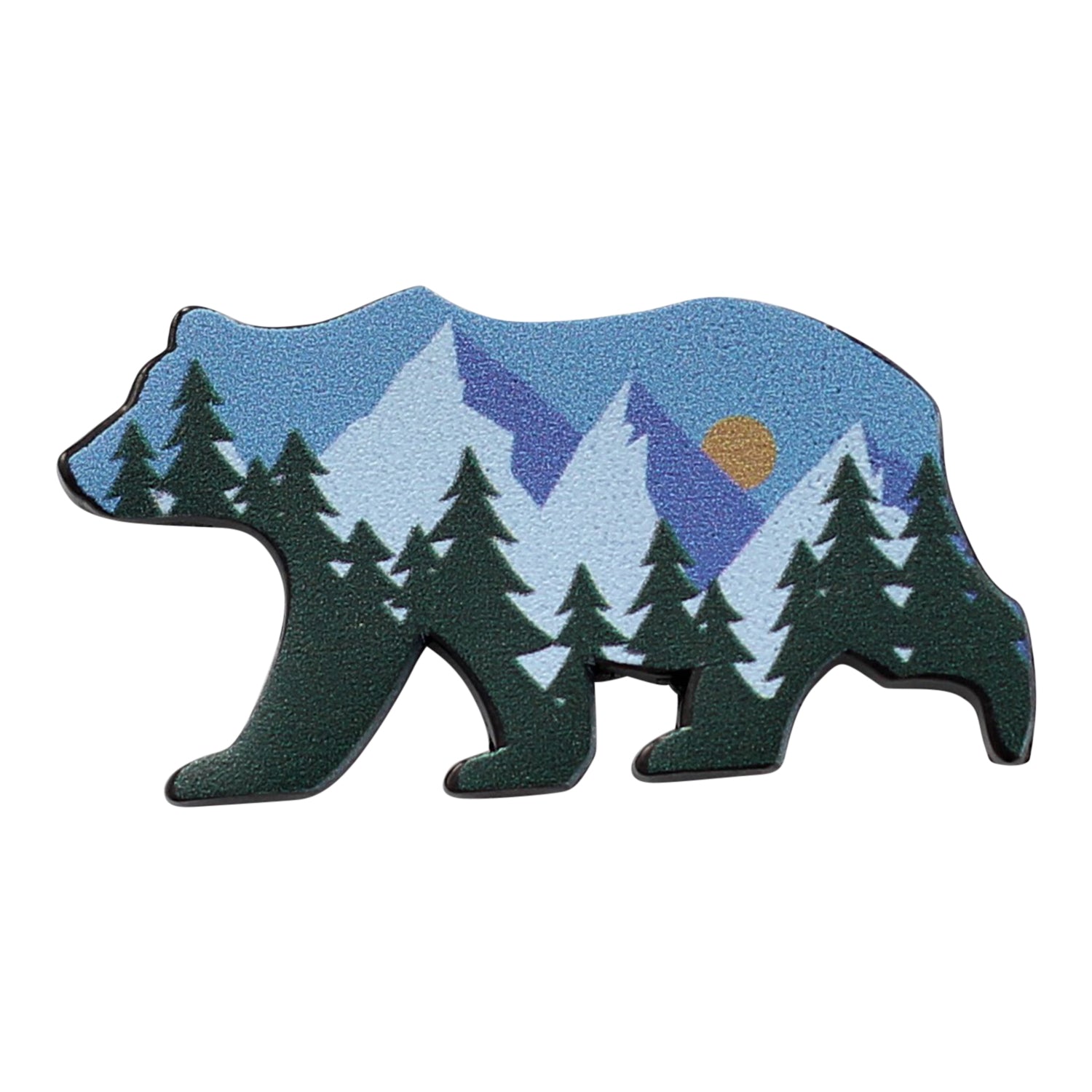 Bears symbolize strength, family, and health, while mountains symbolize constancy and eternity. This combination gives this pin tranquility and stillness. The incredible details of the screen printed design along with the smooth matte finish make this a true collectible. Perfect for anyone who loves the outdoors, hiking, skiing, running, or climbing. And you can put it anywhere, jackets, hats, backpacks, and bags - with the double-posted design, it won't spin and is more securely fastened.