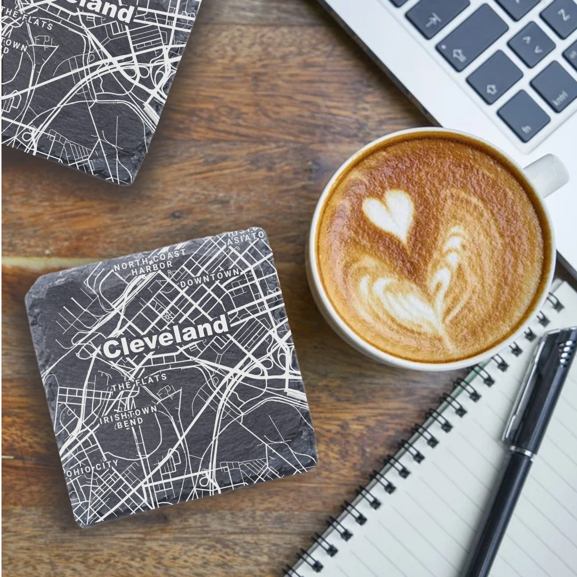 Blue Ridge Mountain Gifts - Cleveland OH Map - UV Printed Slate Coasters