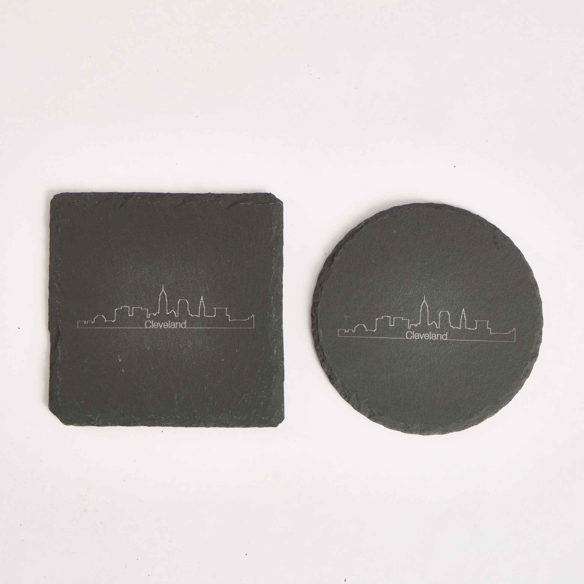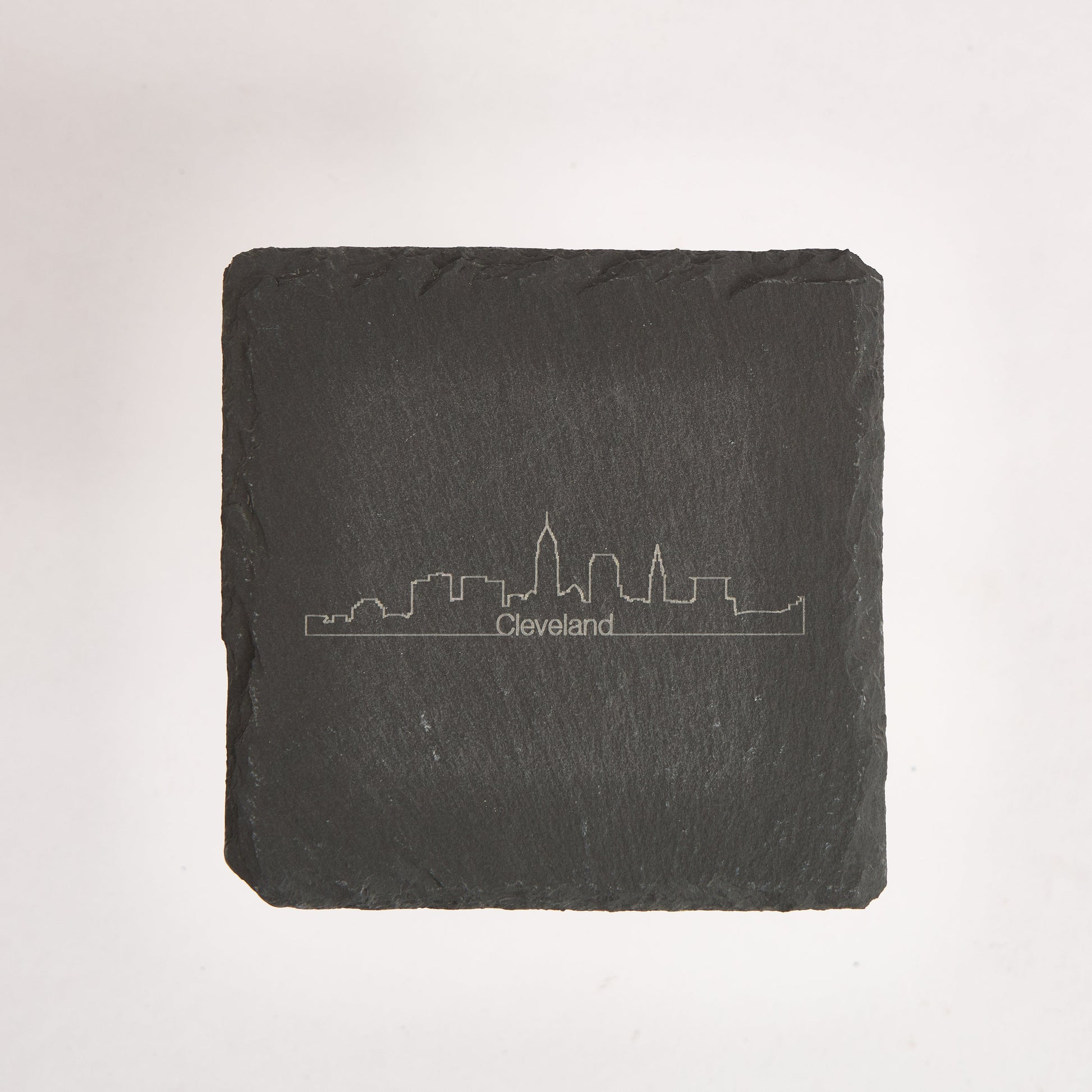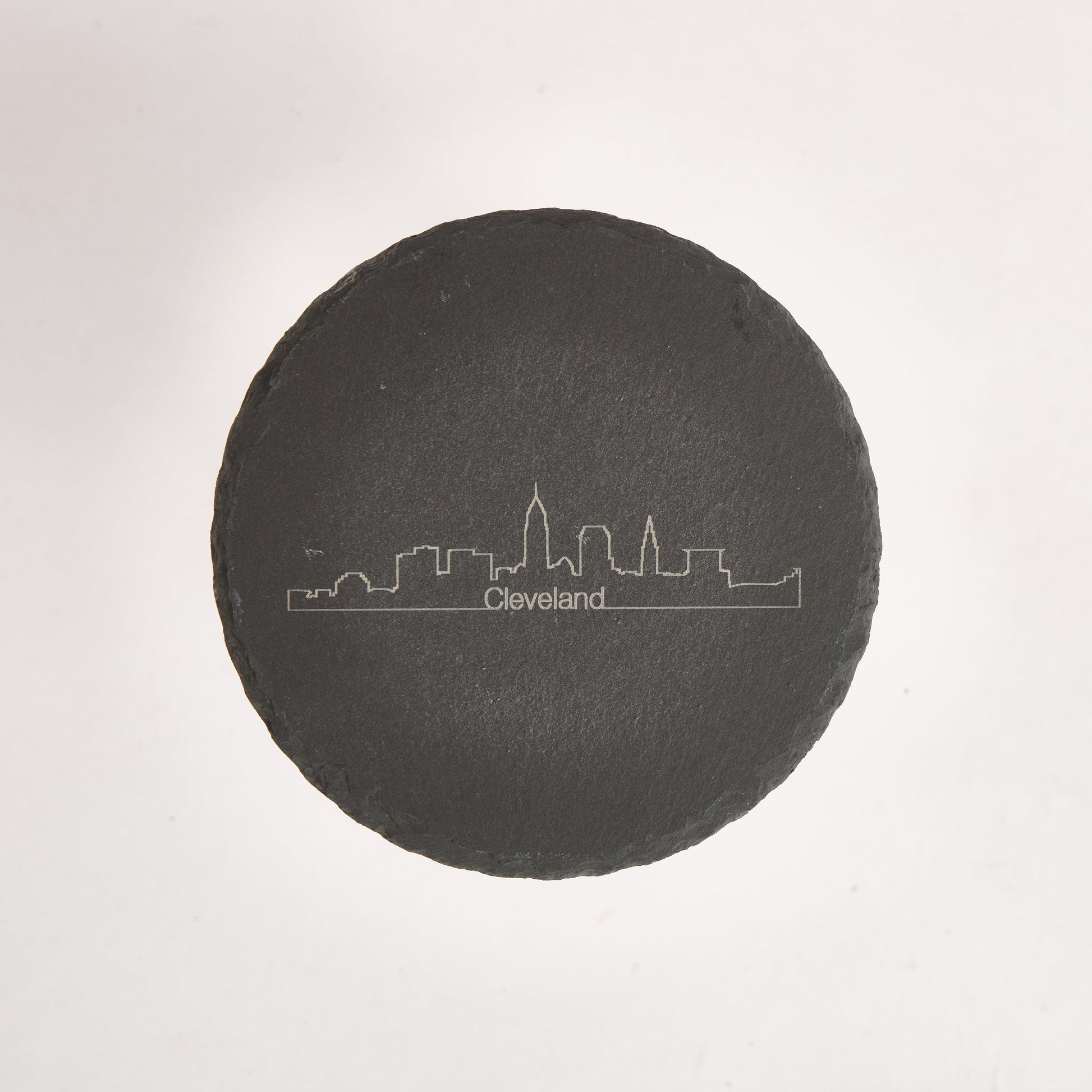 Cleveland Skyline Slate Coaster – 4-Inch Engraved Drink Coaster | Round or Square Natural Stone | Cleveland Souvenir Gift
