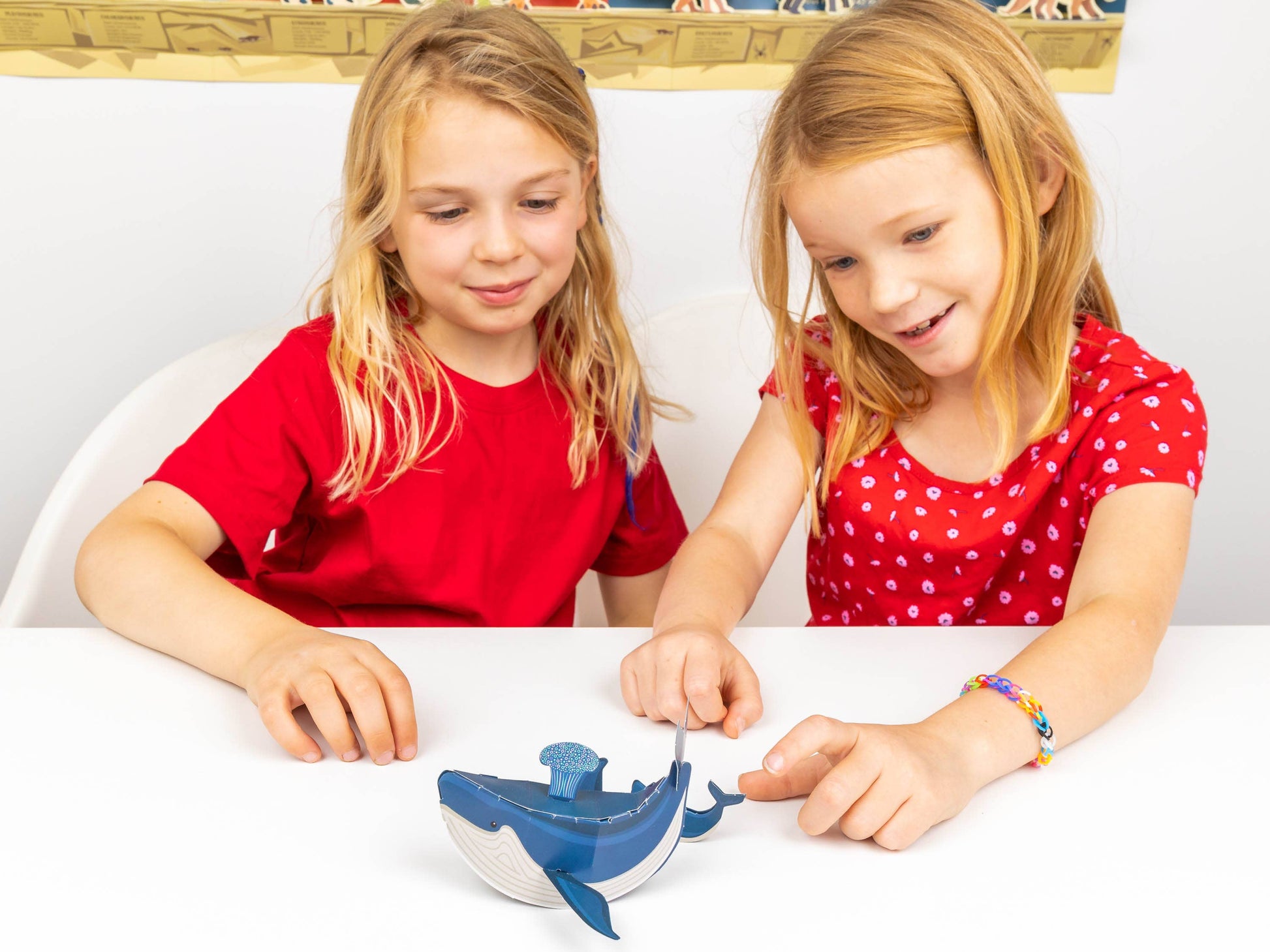 Make a beautiful whale and calf. Watch them rock across the desk before catching a few fish