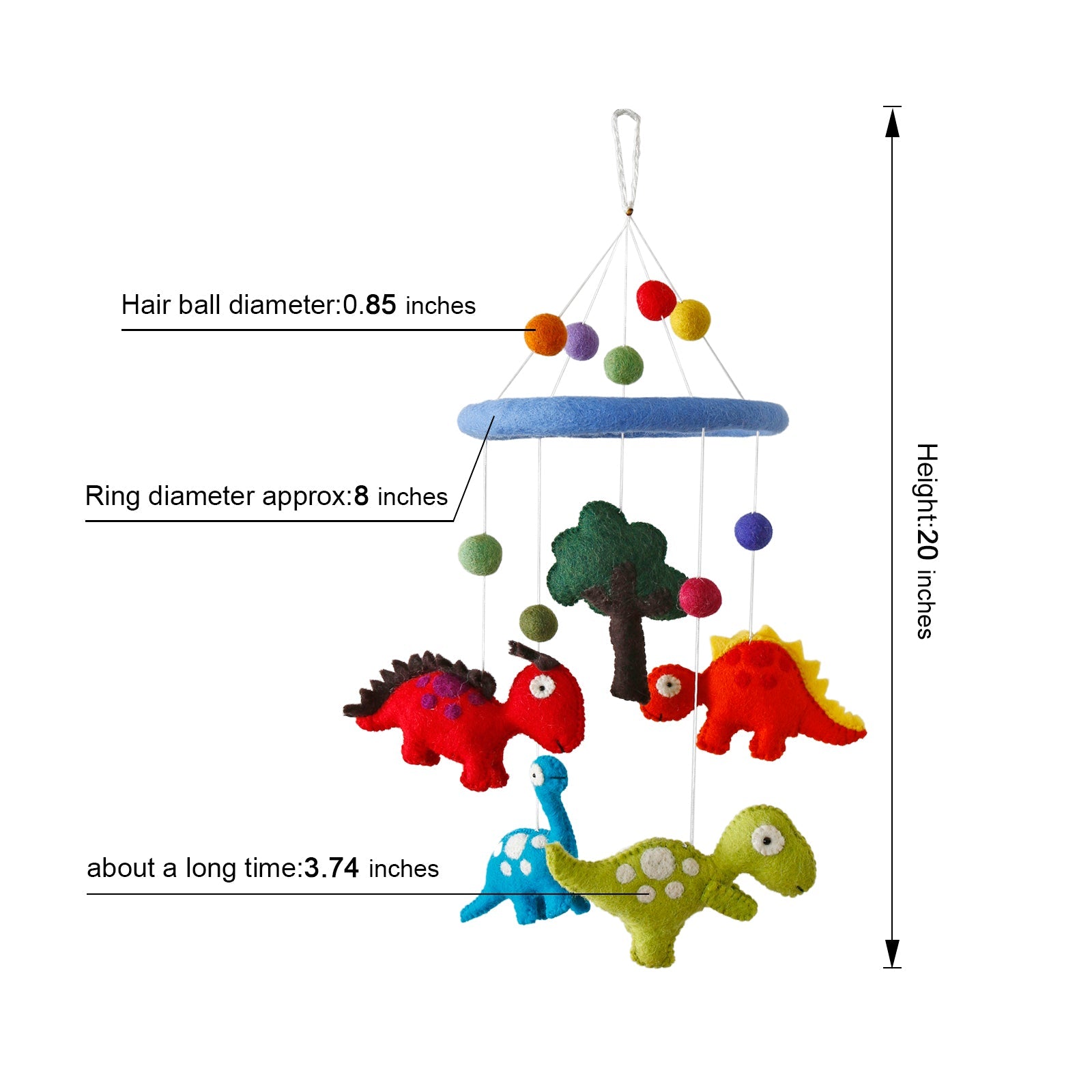 Handmade Animal Wool Felt Baby Mobile For Crib Children's & Nursery Room -Dinosaur