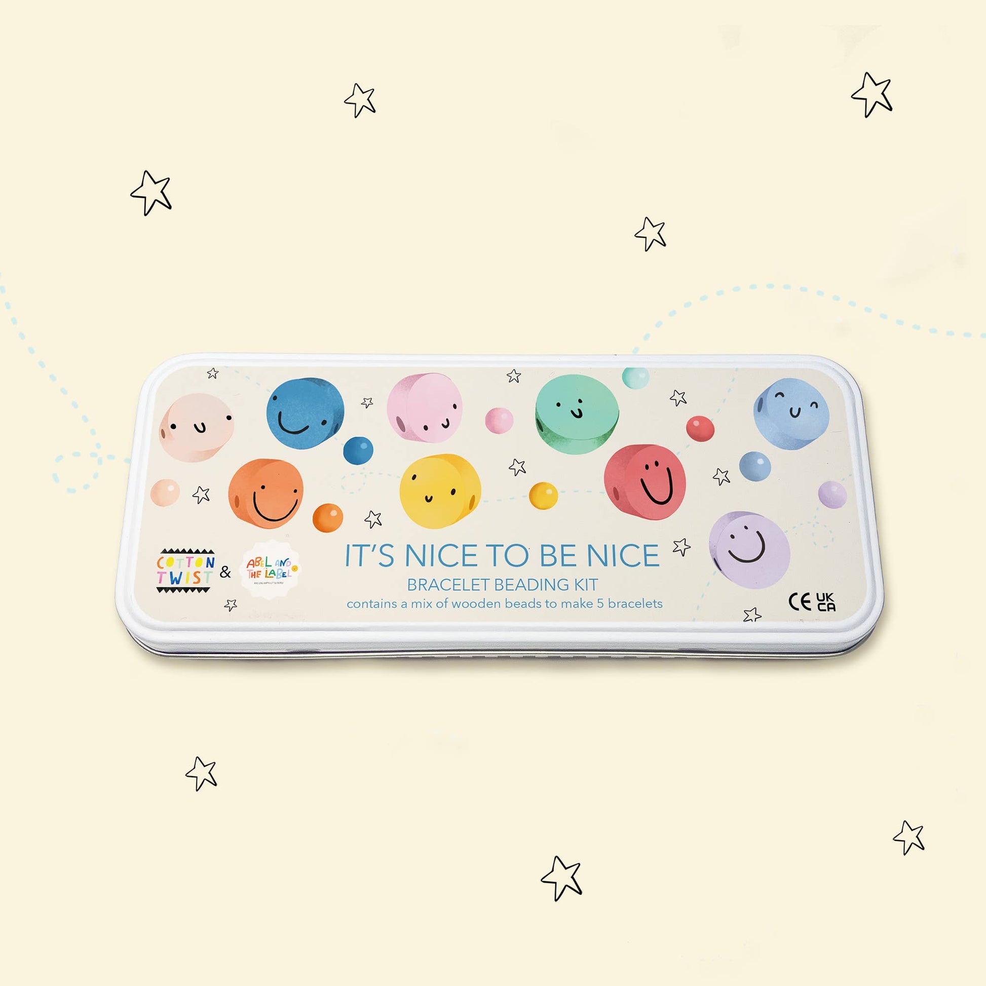 Crafted with love, this set is more than just a fun activity. We believe that teaching children the value of kindness is essential. Containing enough beads to make 5 beautiful bracelets, a selection of smiley faces and colourful spacer bead await!