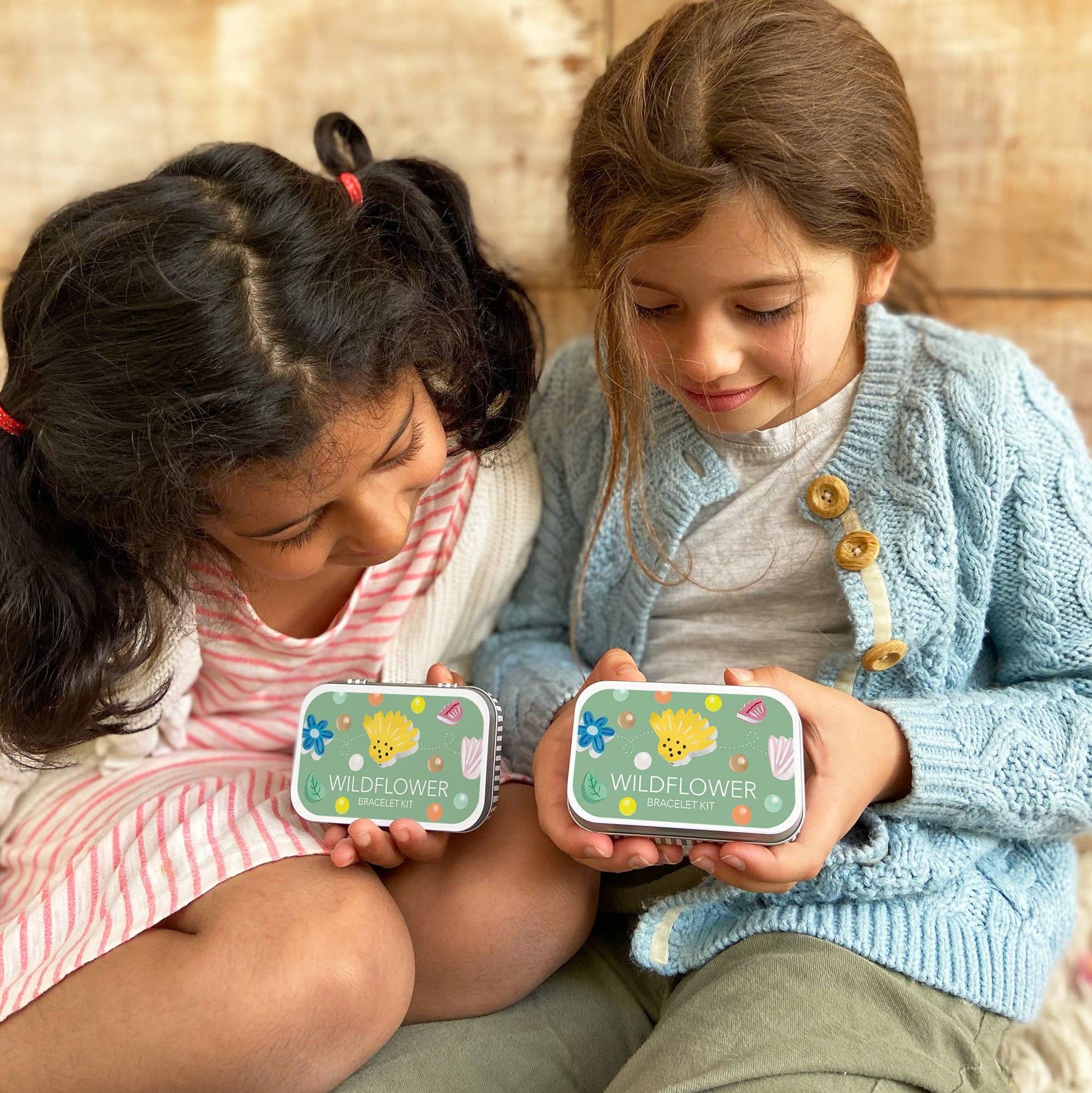 A beautiful personalised gift tin containing elastic & beads to create this wildflower bracelet. The elastic comes with metal ends to aid the beading process for young children.