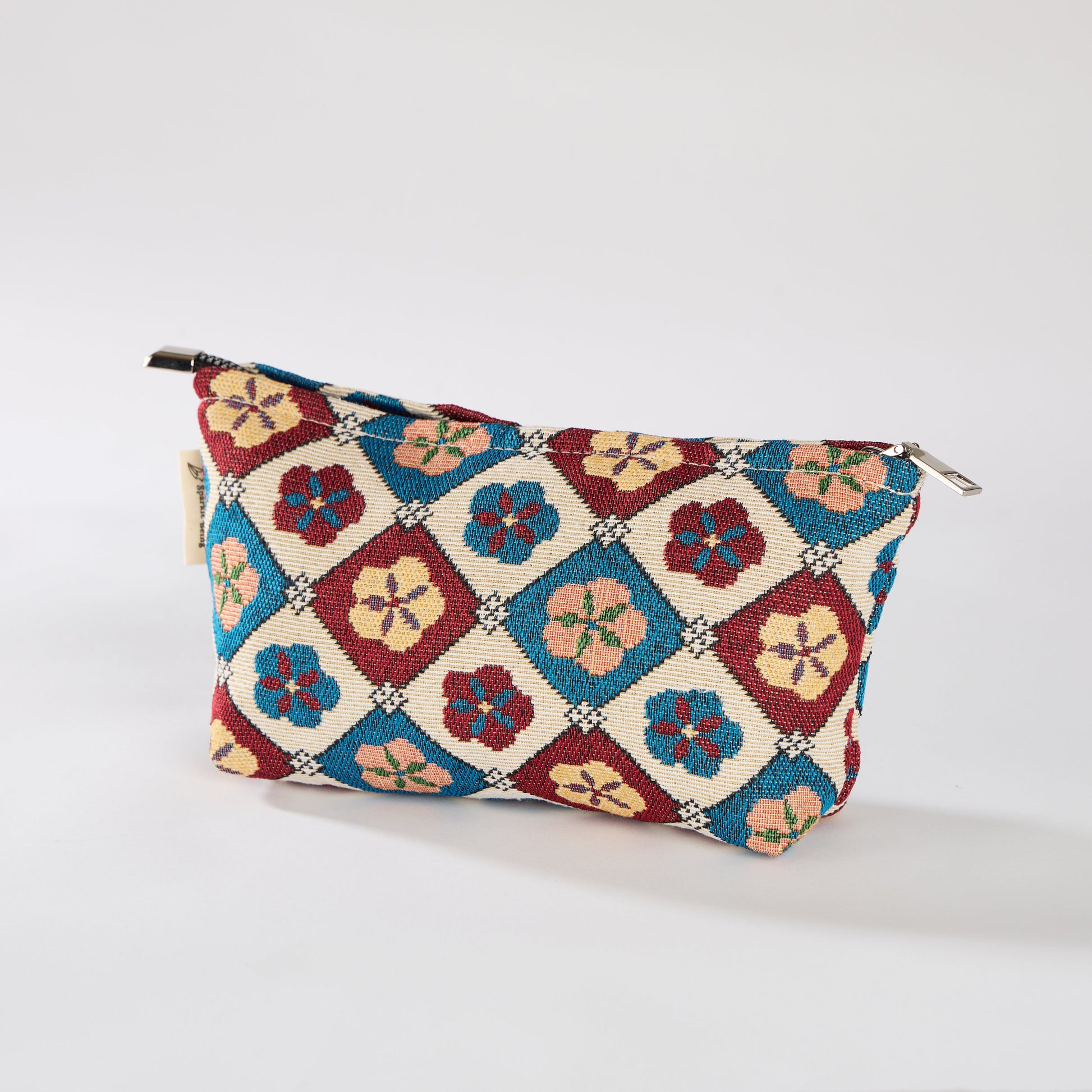 Vintage Turkish Floral Print Toiletry / Makeup Bag - Travel-Friendly Cosmetic Bag