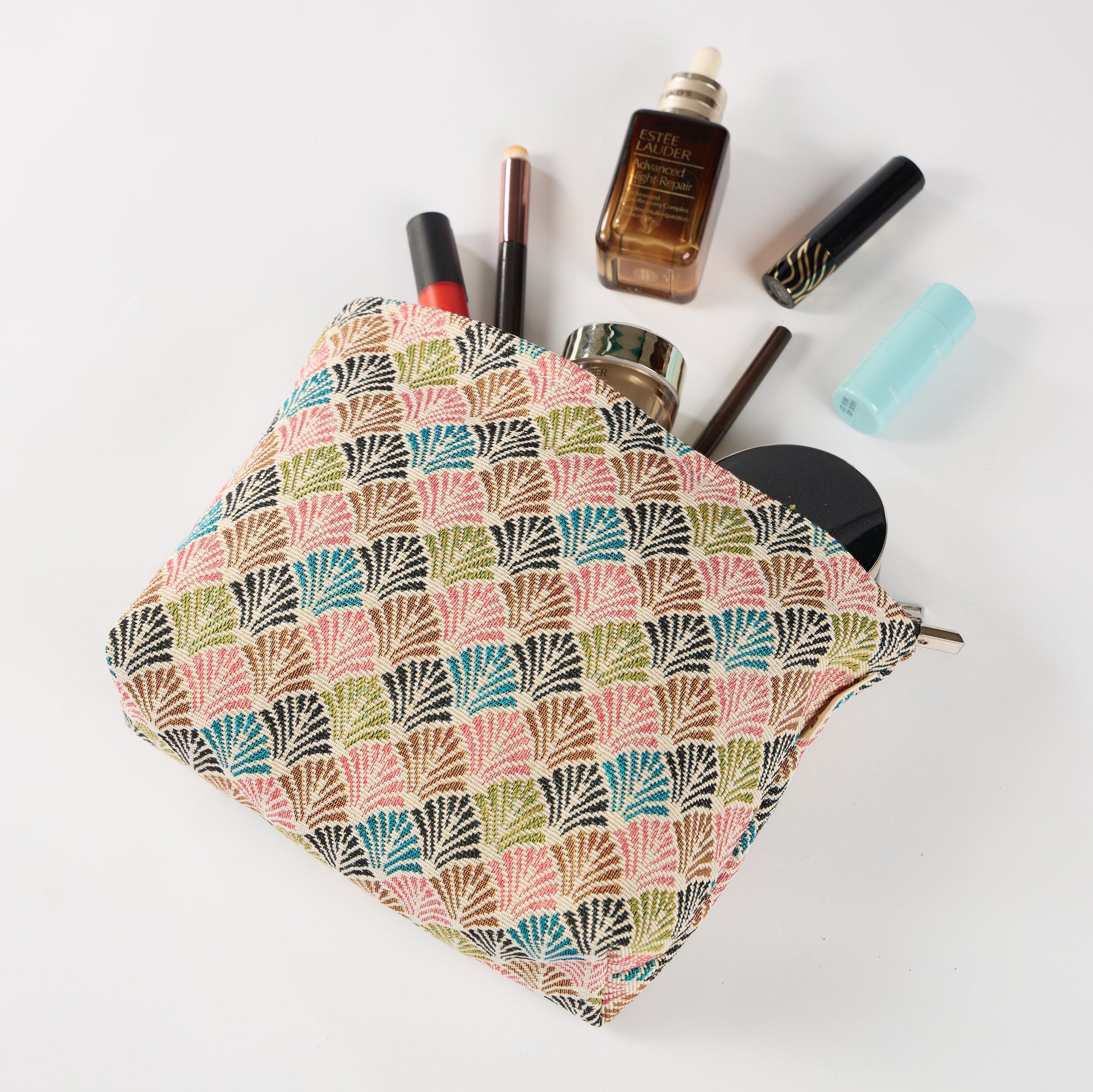 Oriental Waves Multi-Color Print Toiletry / Makeup Bag - Travel-Friendly Cosmetic Bag