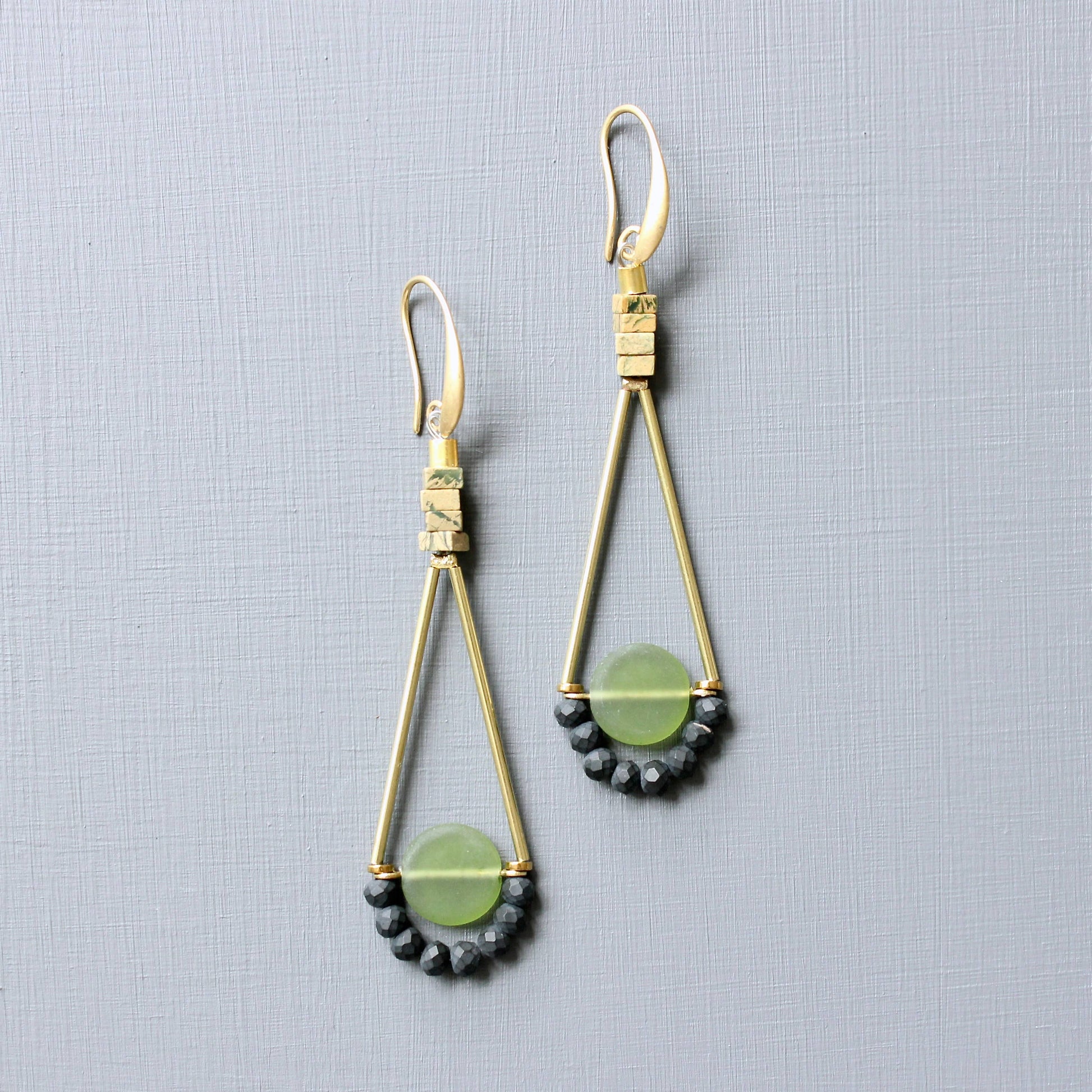 David Aubrey Jewelry - Olivine Glass Geometric Dangle Earrings