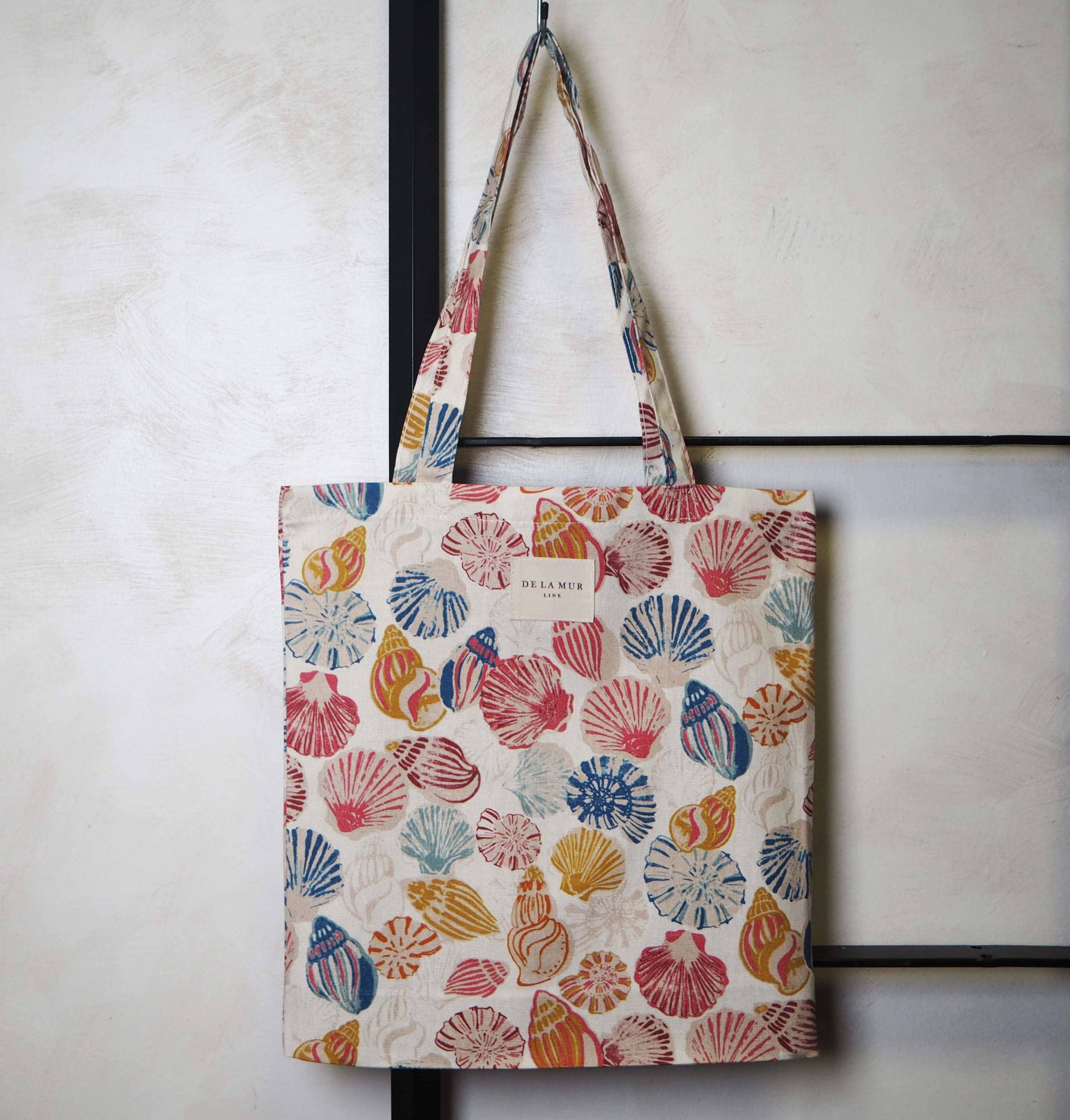 Bolsa “tote bag” con asas para llevar al hombro. Con estampado marinero de conchas en tonos rosas y azules. Para su correcto mantenimiento se aconseja lavarlo en frío y no utilizar secadora.