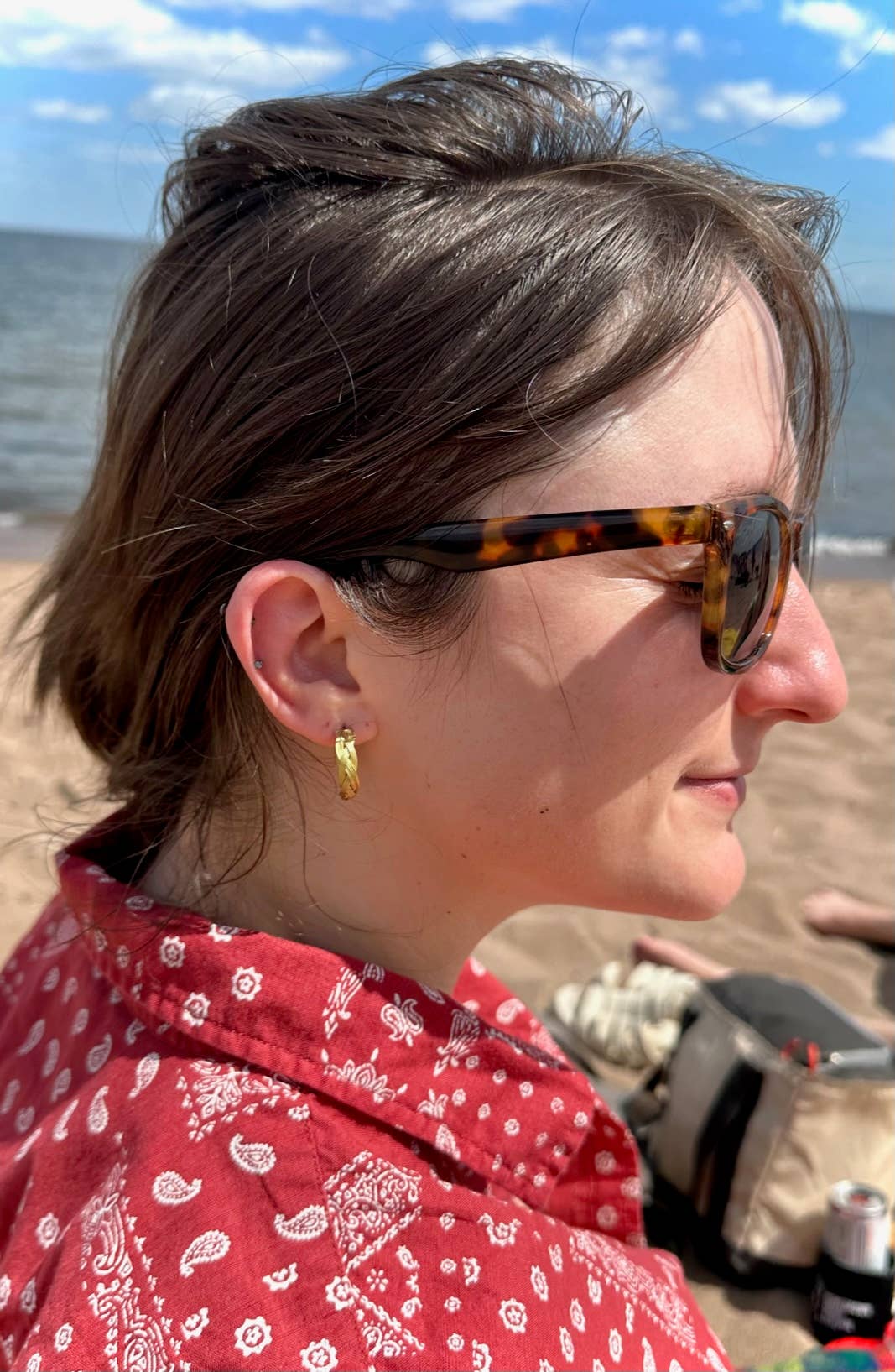 Earrings measure .75". Brass-plated or silver-plated recycled metal. Nickel-free.