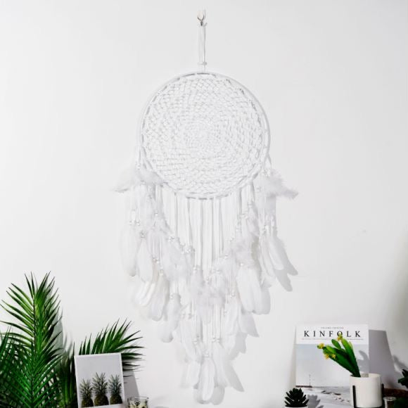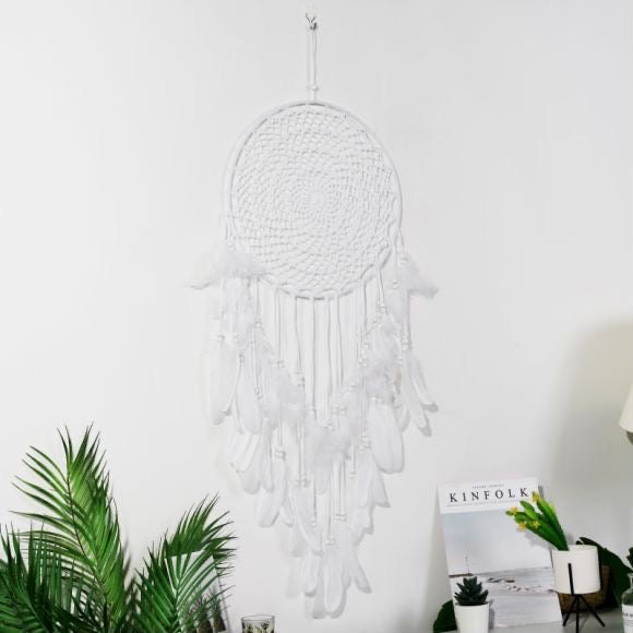 Feather Dream Catcher Macrame Wall Hanging Decoration - White