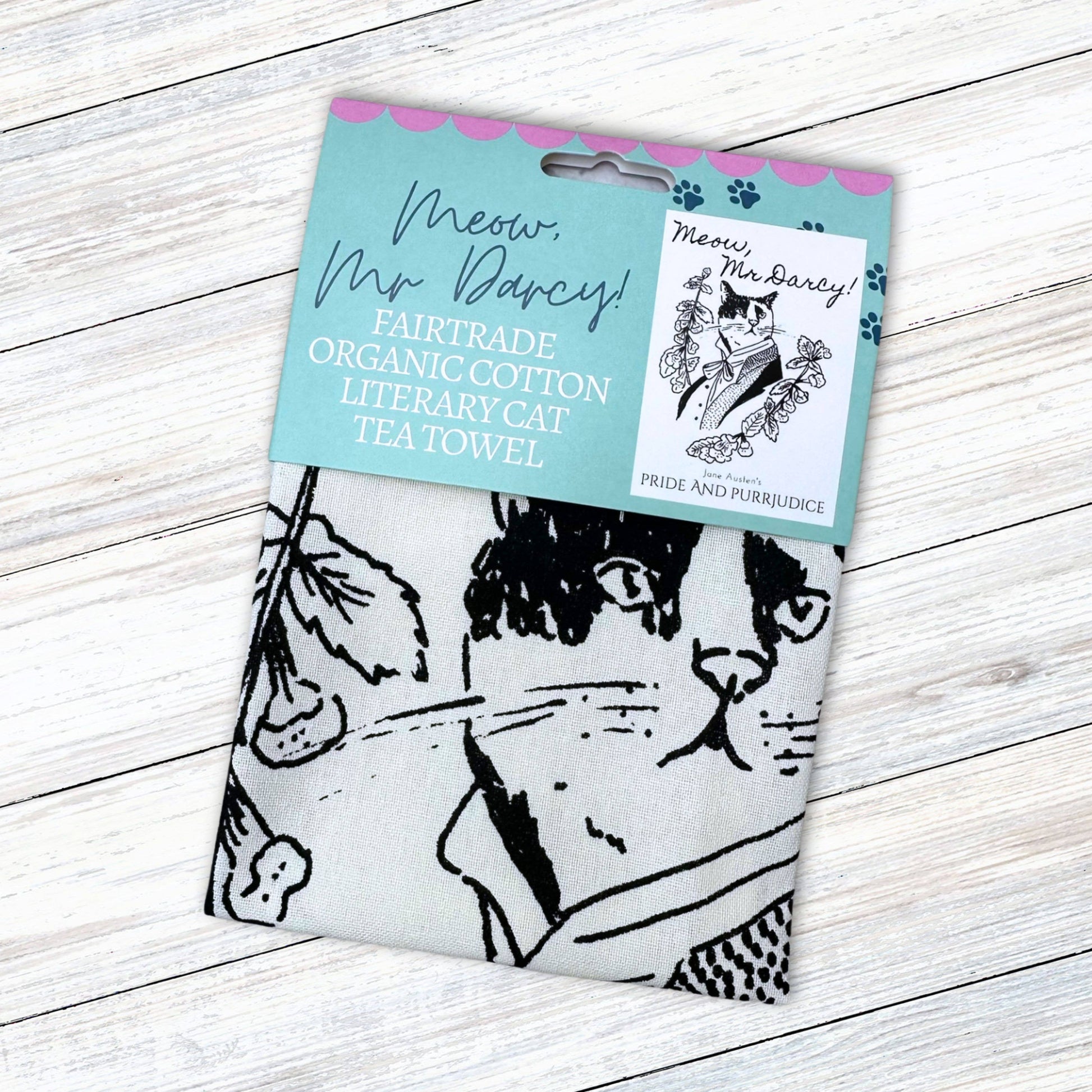 GiftSmith - Meow, Mr Darcy! Fairtrade Cotton Literary Cat Tea Towel