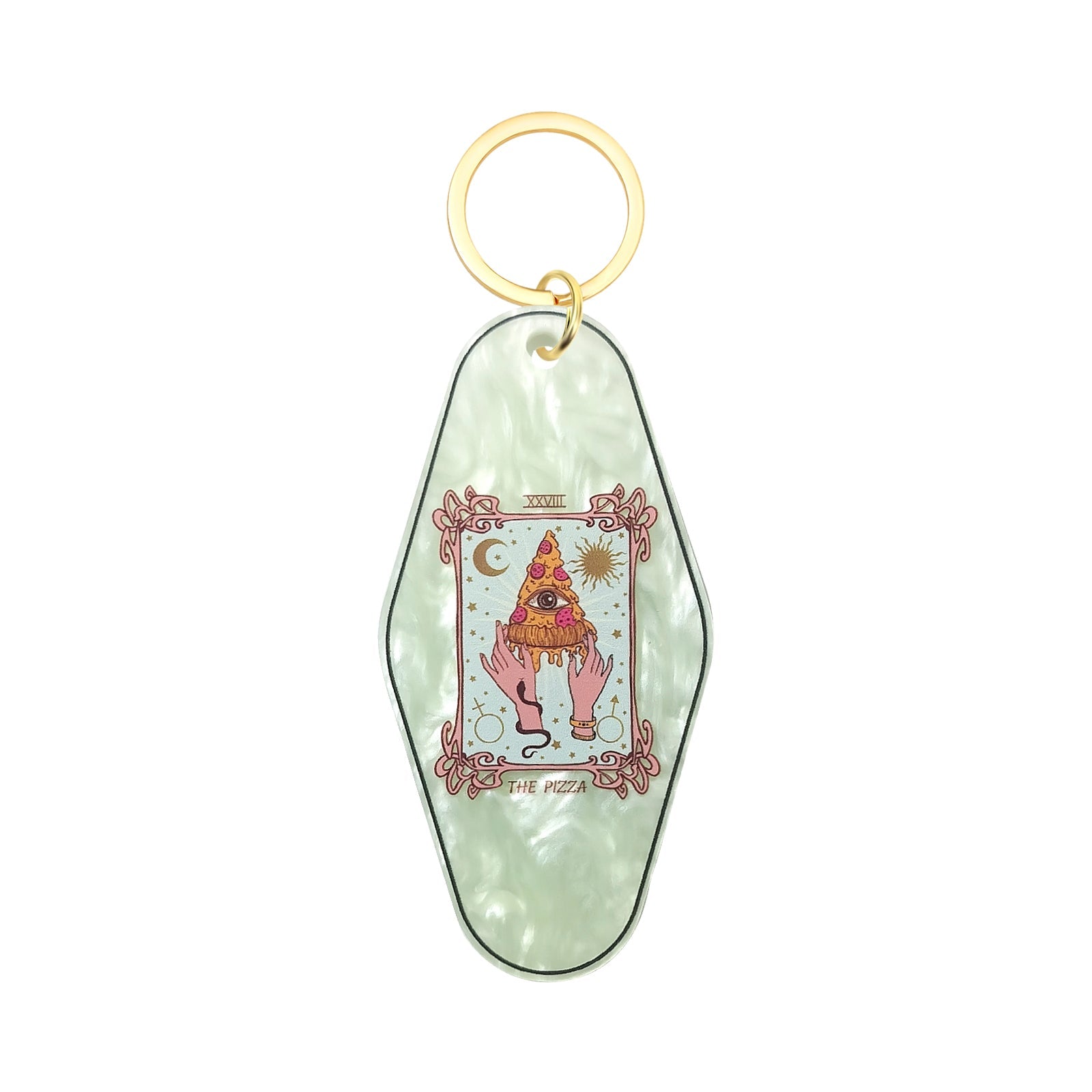 The Pizza Tarot Card Motel Keychain - Vintage Nostalgia Motivational Hotel Keychain