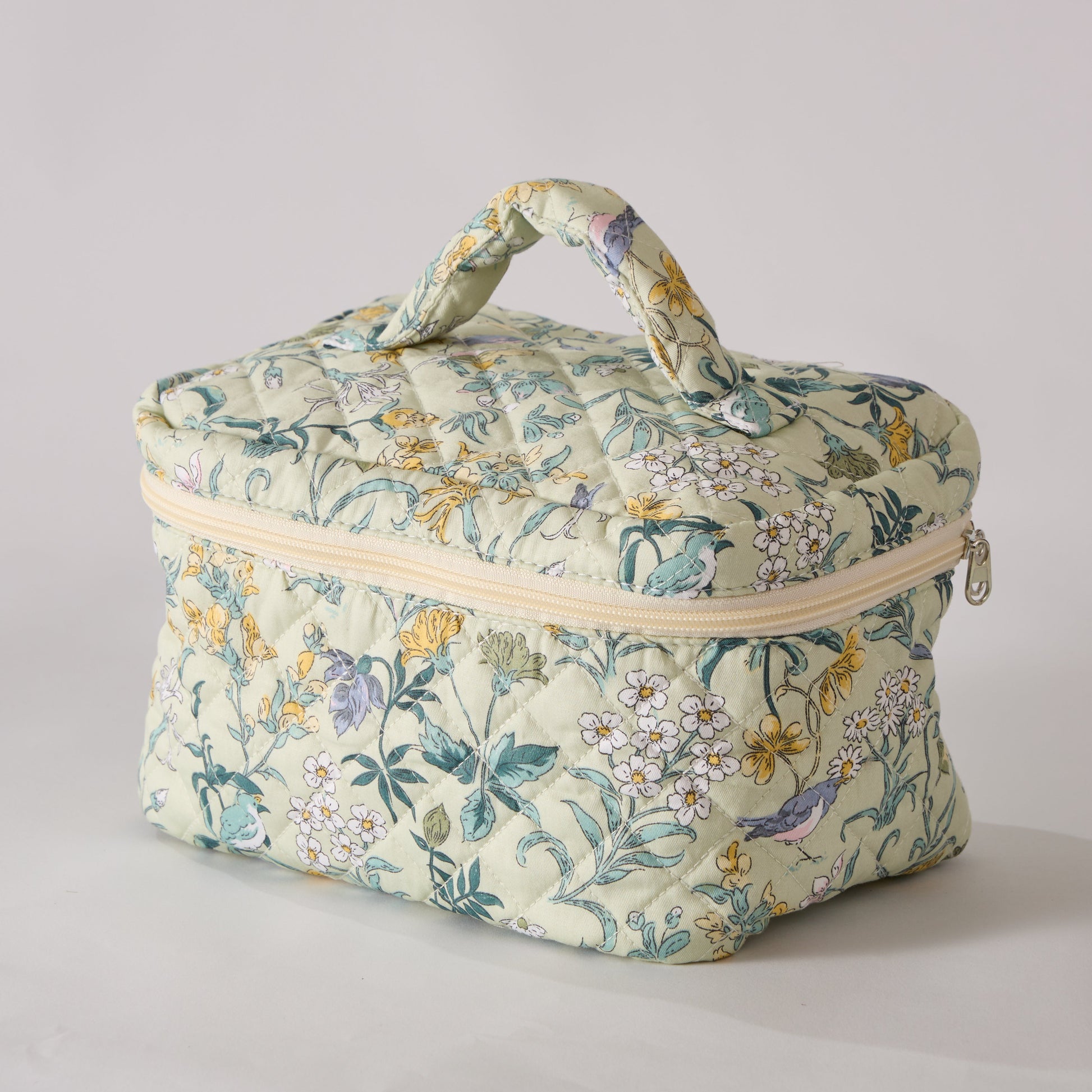 Spring Serenity Floral Quilted Makeup Bag - Small Pouch Travel Toiletry Organizer