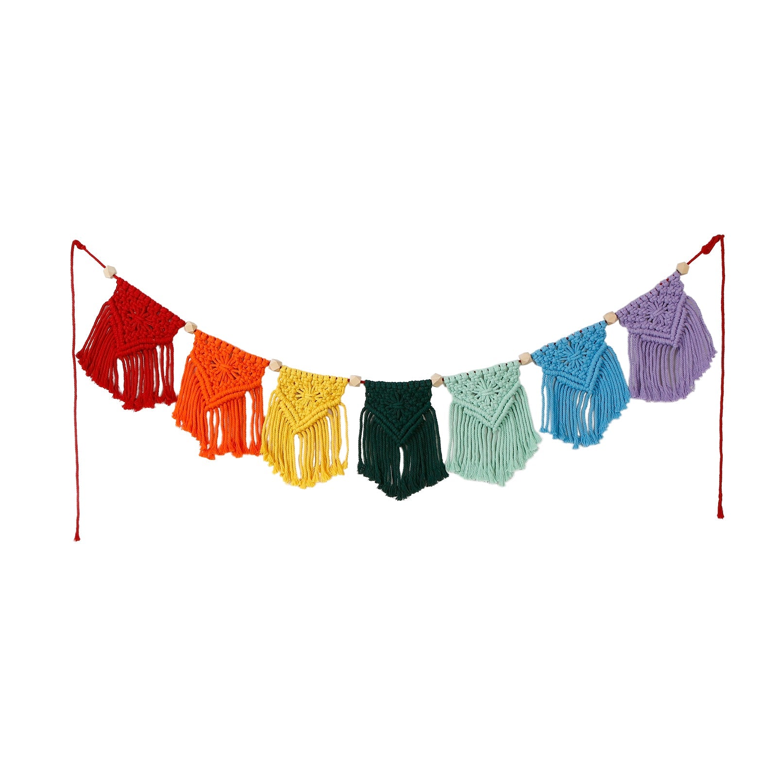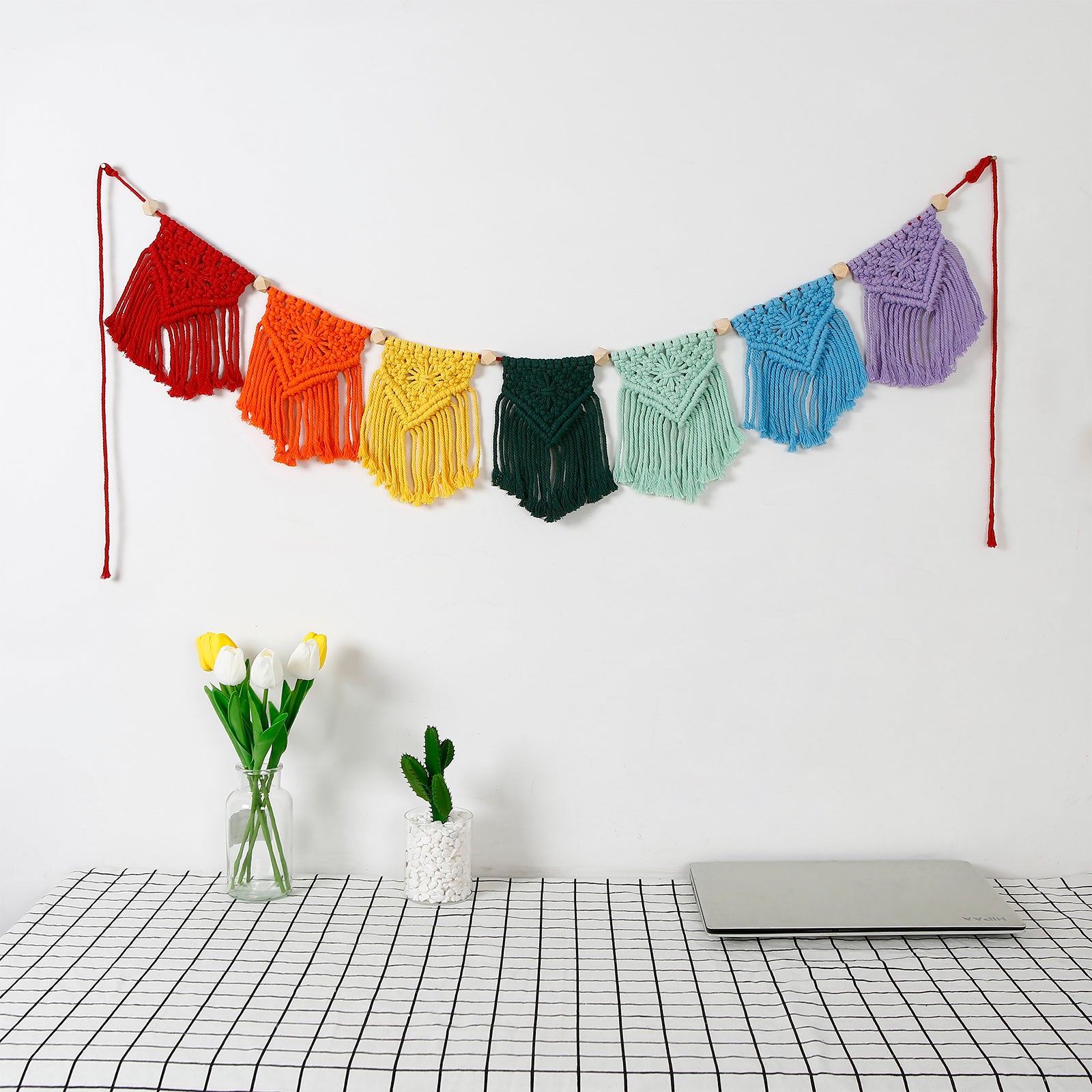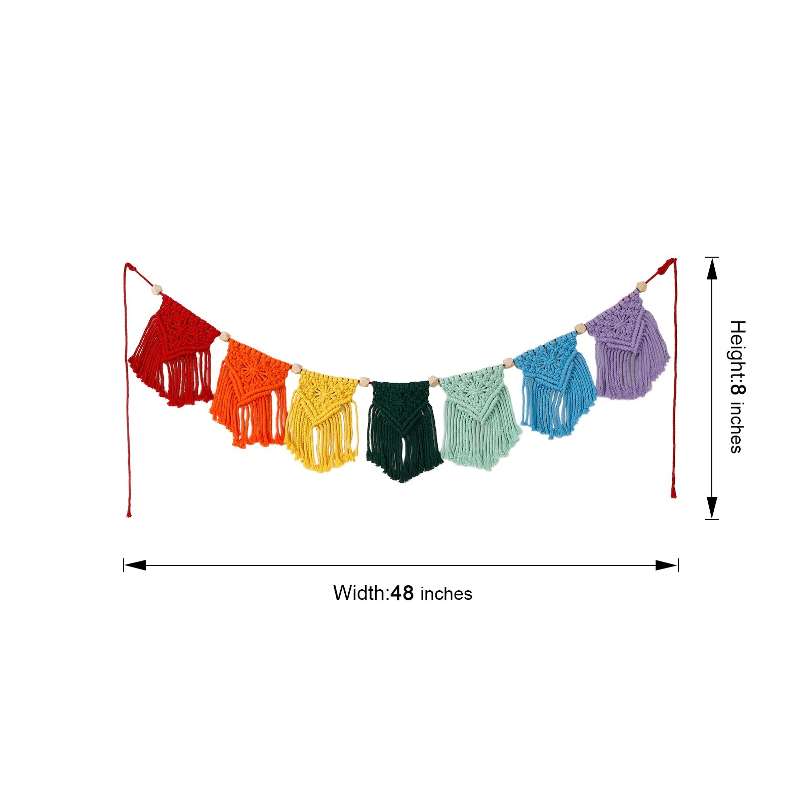 Hand Woven Cotton Macrame Wall Hanging Curtain Decor Banner - Rainbow