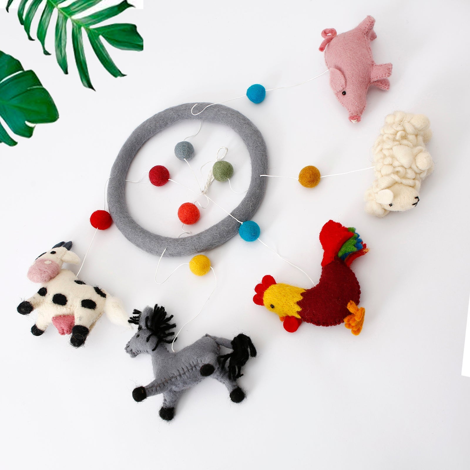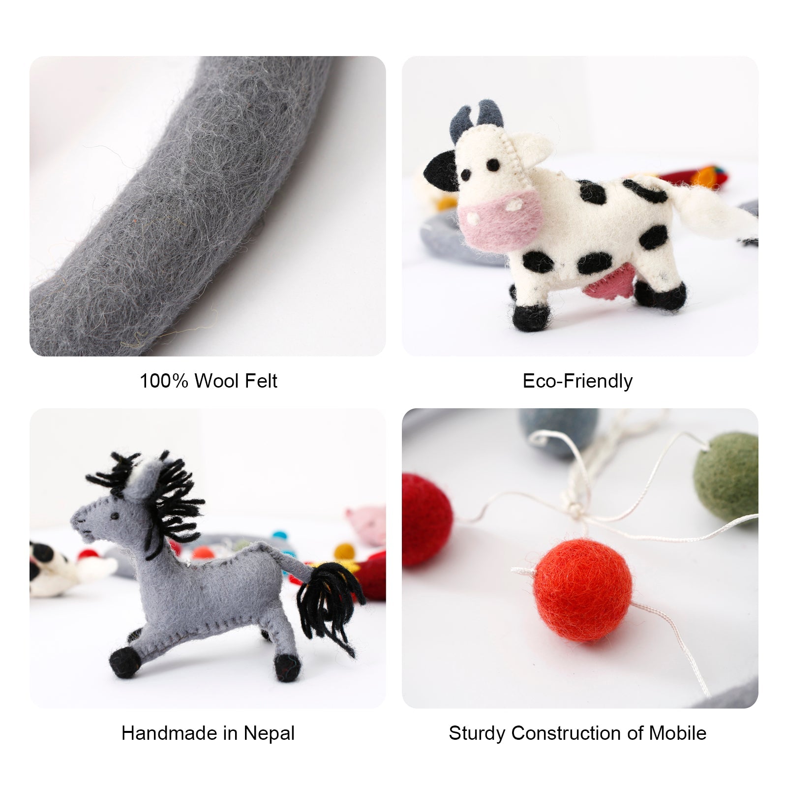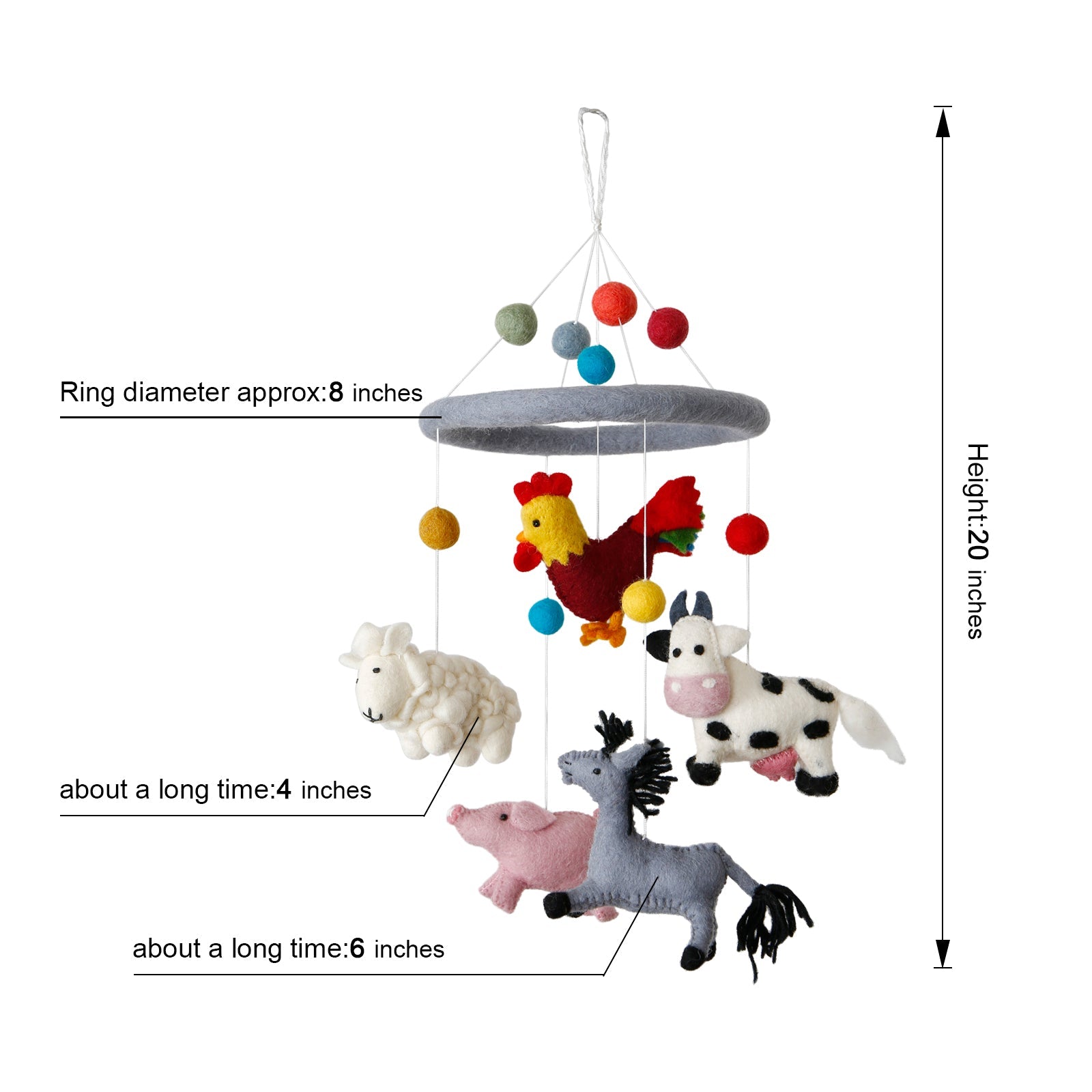 Handmade Wool Felt Baby Mobile For Crib Nursery - Cow, Chicken, Sheep Animal Toys Mobile