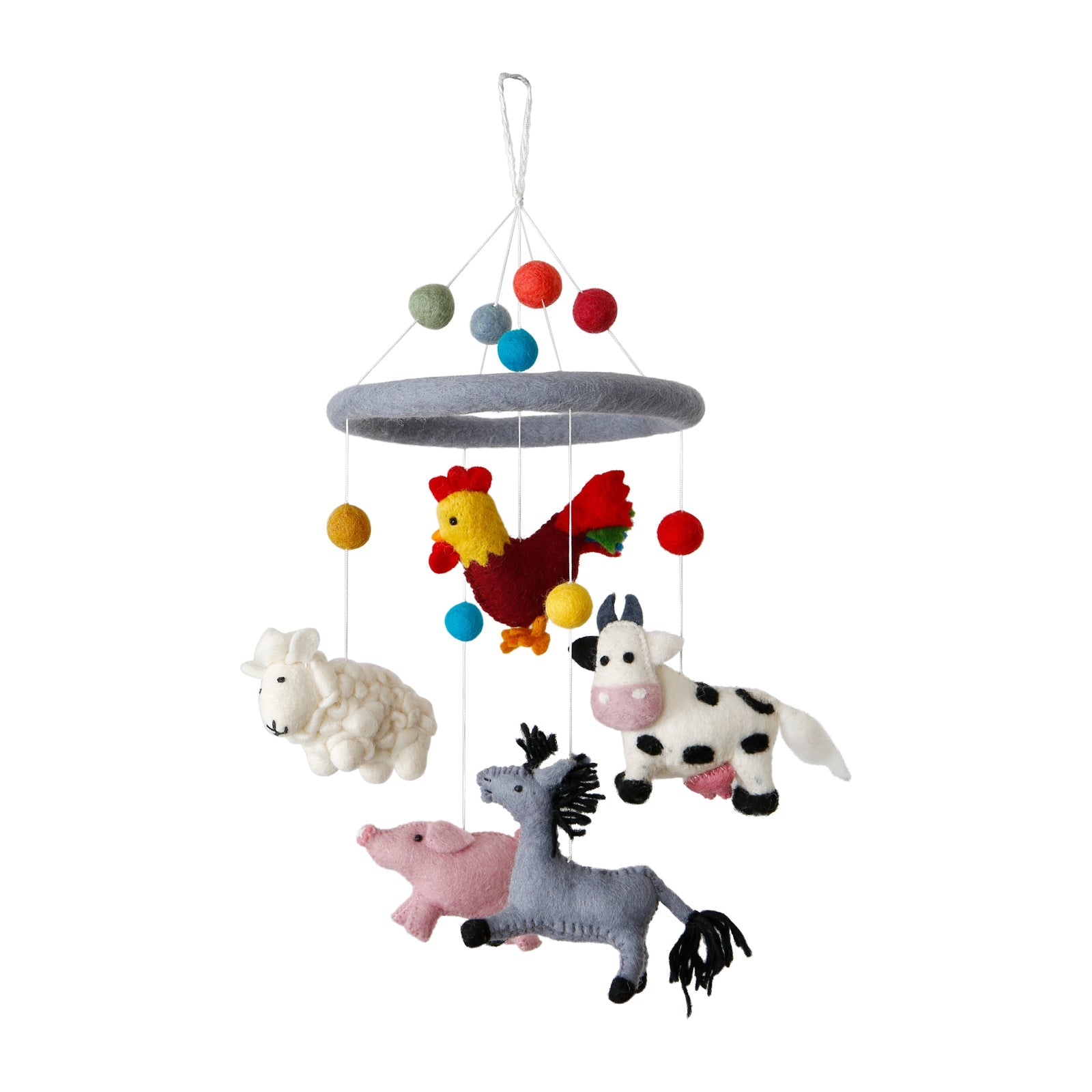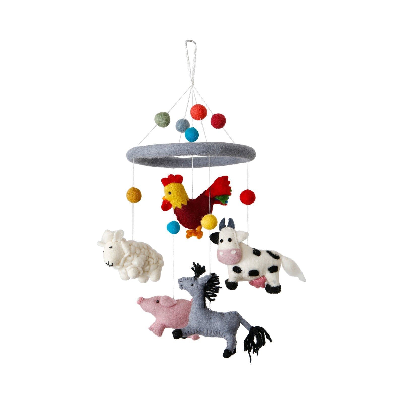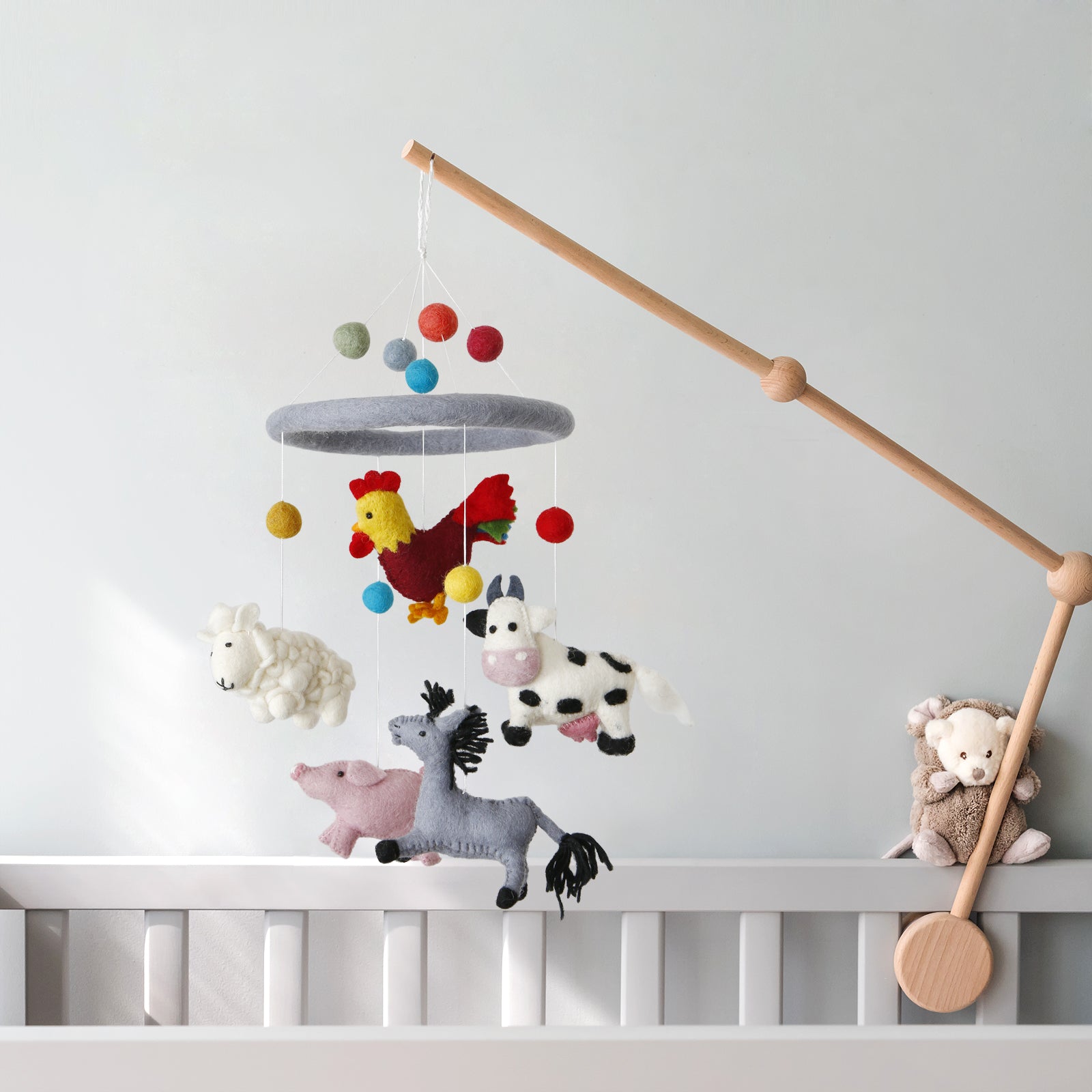 Handmade Wool Felt Baby Mobile For Crib Nursery - Cow, Chicken, Sheep Animal Toys Mobile