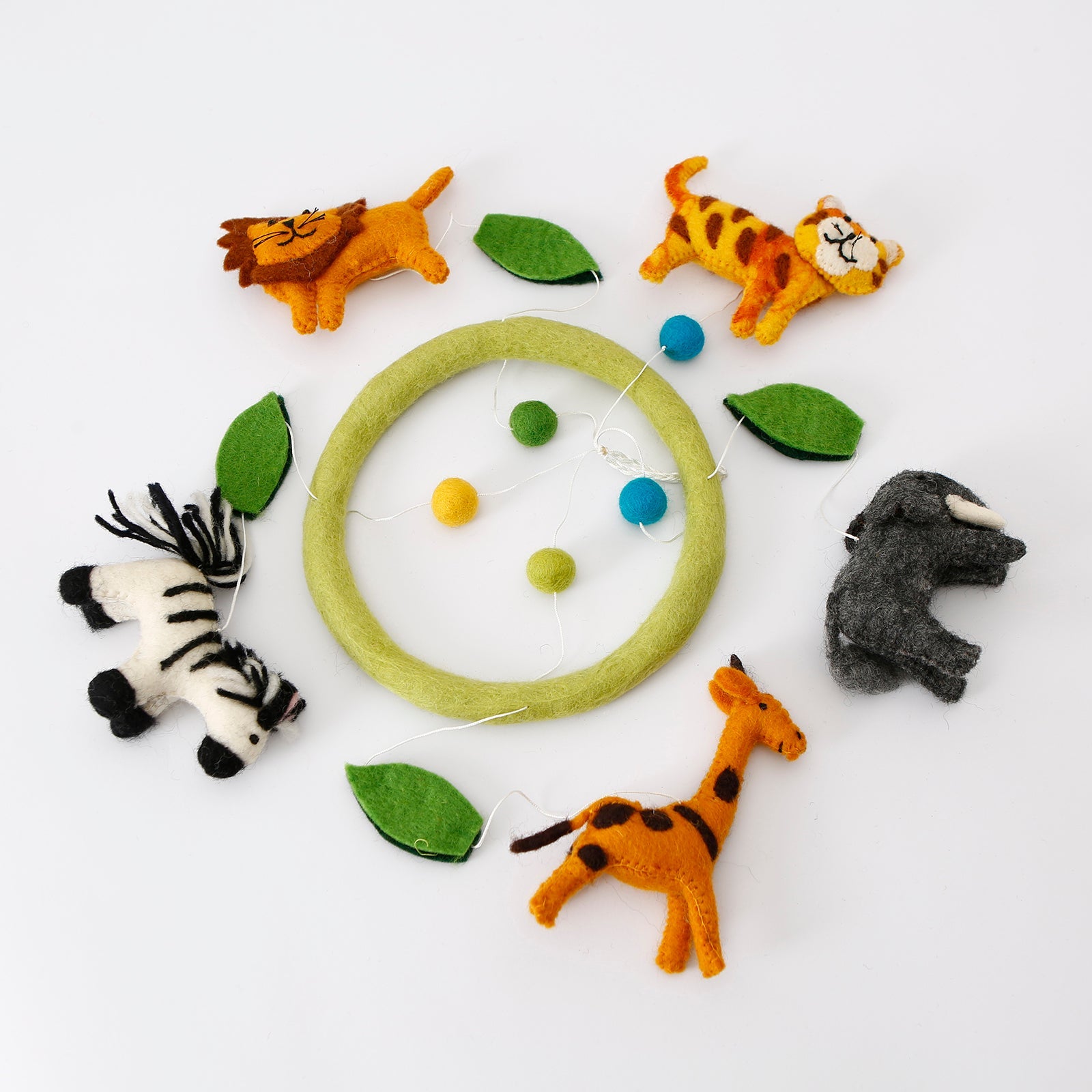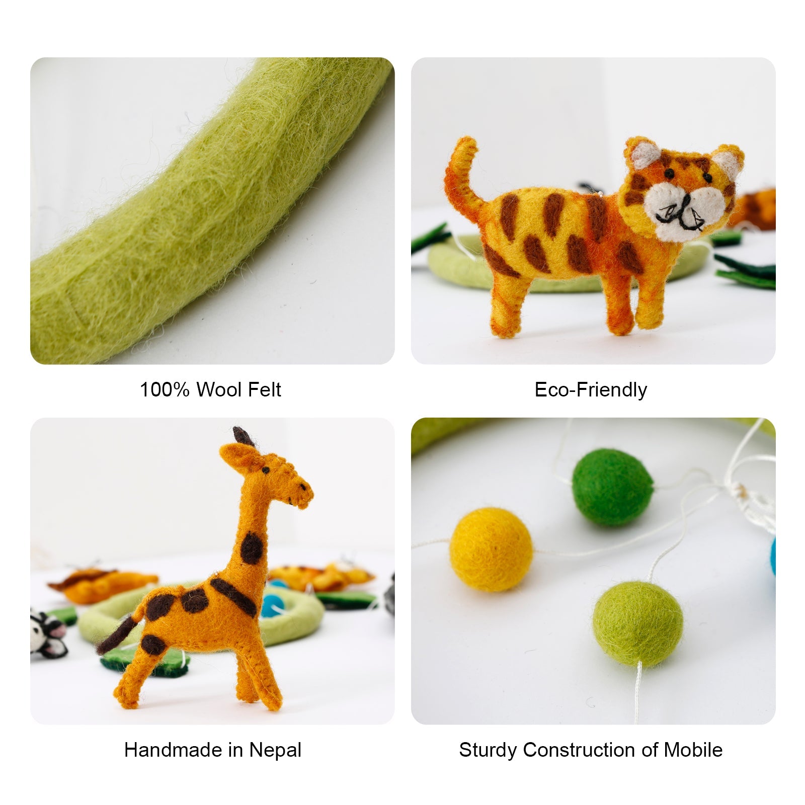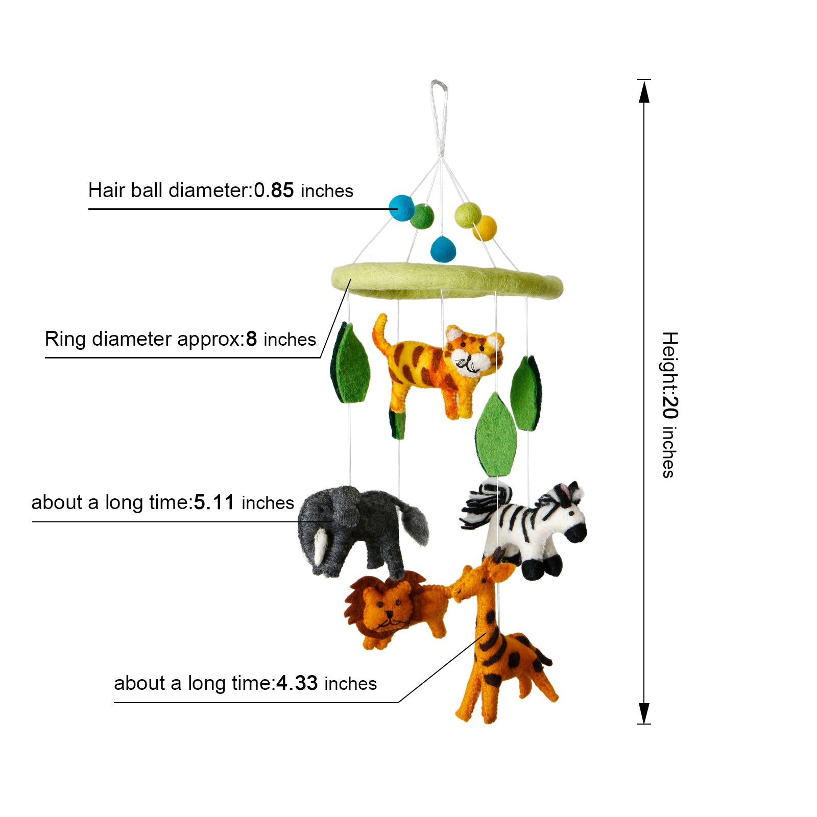 Handmade Wool Felt Baby Mobile For Crib Nursery - Tiger, lion, Zebra, elephant Mobile Toys
