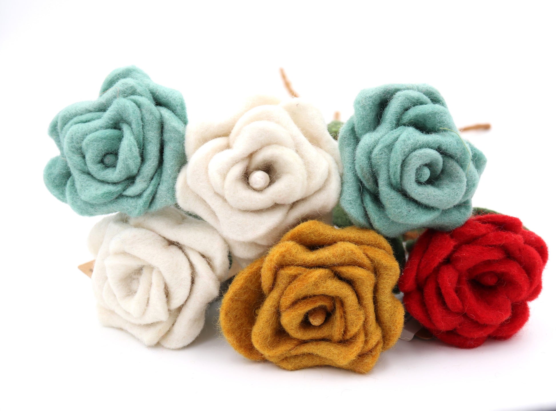 - Handcrafted wool felt flowers are soft to the touch and provide a long-lasting burst of color