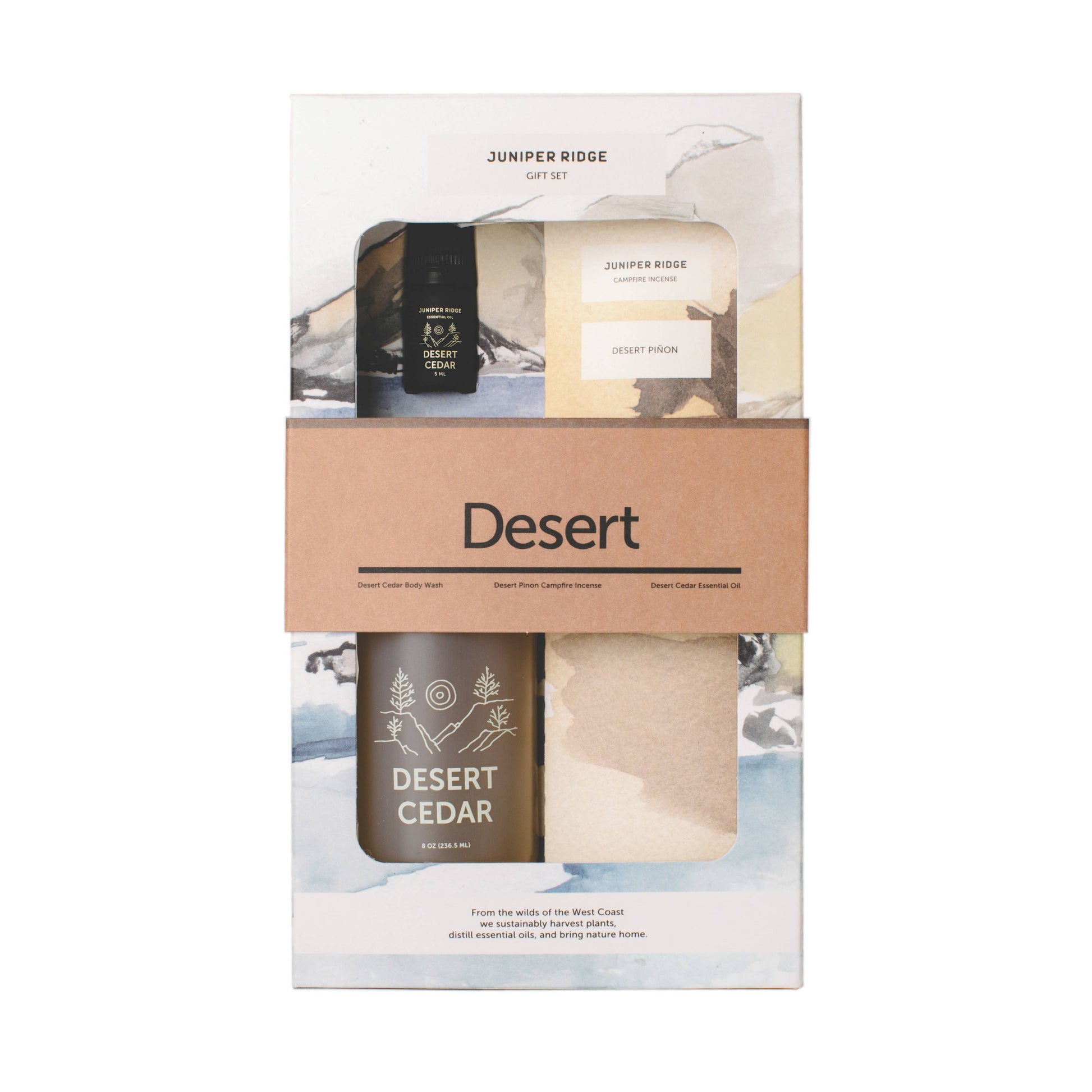 Products included: Desert Cedar Body Wash, Desert Cedar Essential Oil and Desert Incense
