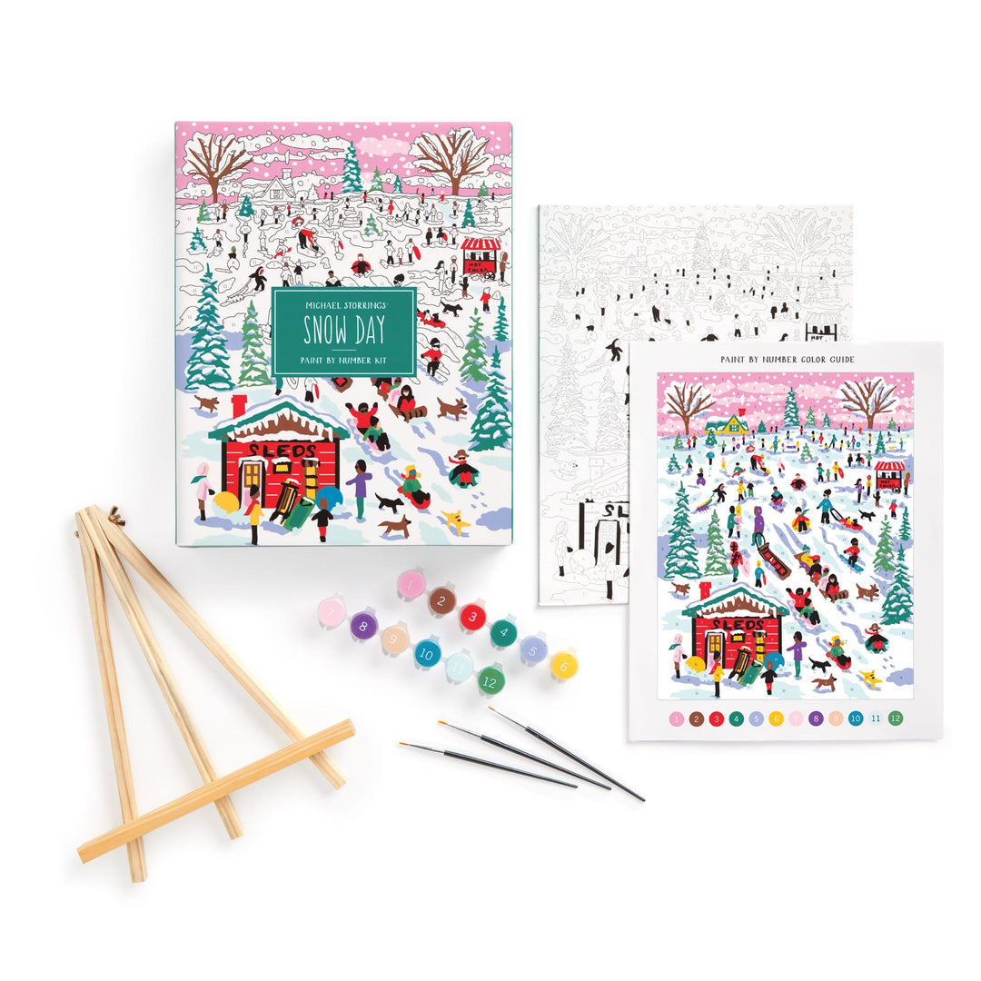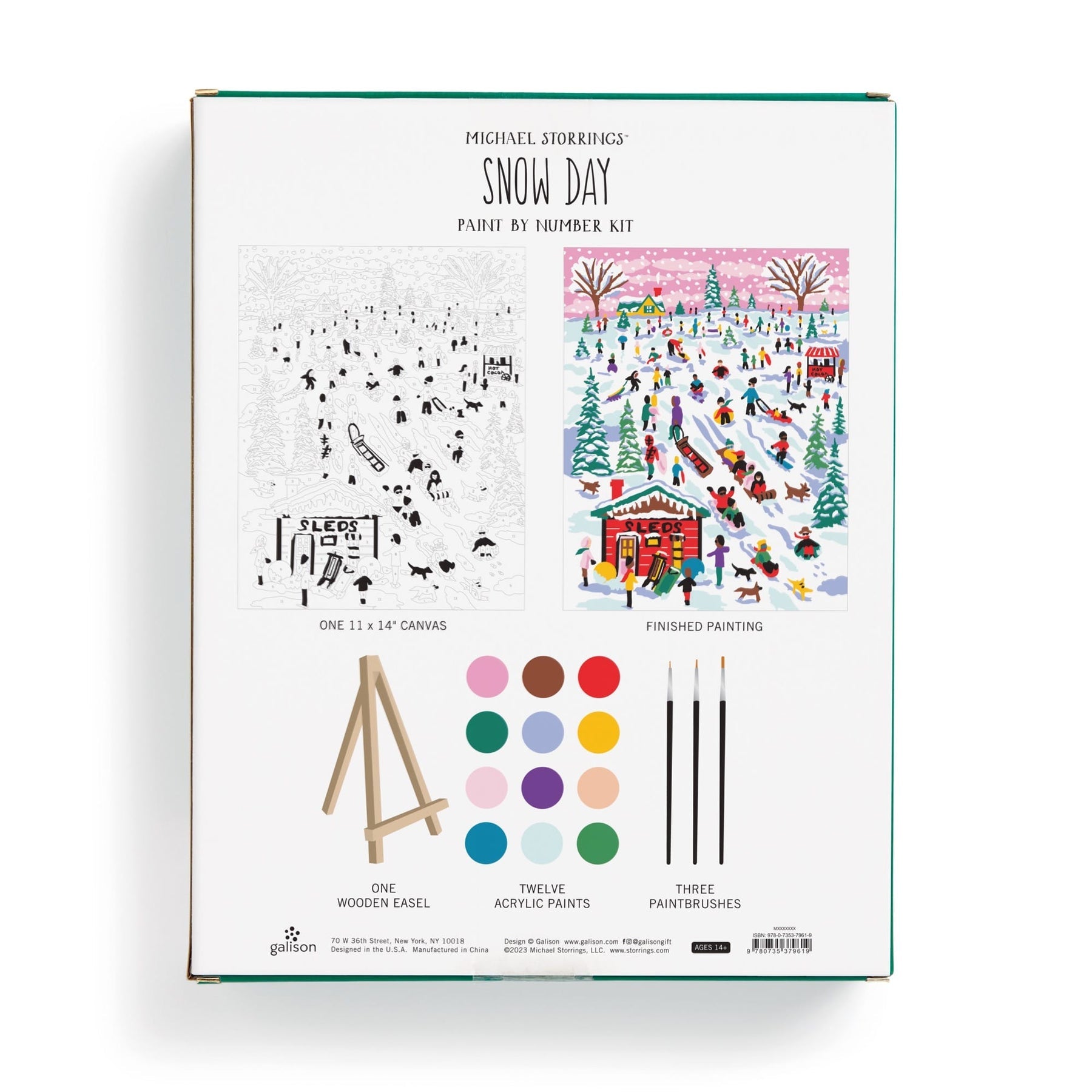 The Michael Storrings Snow Day 11x14 Paint by Number Kit from Galison captures the memories of fun, freedom and wonder while frolicking and sledding on a snow day. This set includes everything you need to recreate Storrings wonderful artwork on your own. Box: 11.25 x 14.25 x 2.25, 286 x 362 x 57 mmOne 11 x 14 Canvas Board12 Acrylic Paints; One Wooden EaselThree Paint BrushesColor Guide / Instruction SheetThe Michael Storrings Snow Day 11x14 Paint by Number Kit from Galison captures the memories of fun, freedom and wonder while frolicking and sledding on a snow day. This set includes everything you need to recreate Storrings wonderful artwork on your own. Box: 11.25 x 14.25 x 2.25, 286 x 362 x 57 mm One 11 x 14 CanvaThe Michael Storrings Snow Day 11x14 Paint by Number Kit from Galison captures the memories of fun, freedom and wonder while frolicking and sledding on a snow day. This set includes everything you need to recreate Storrings wonderful artwork on your own. Box: 11.25 x 14.25 x 2.25, 286 x 362 x 57 mm One 11 x 14 Canva