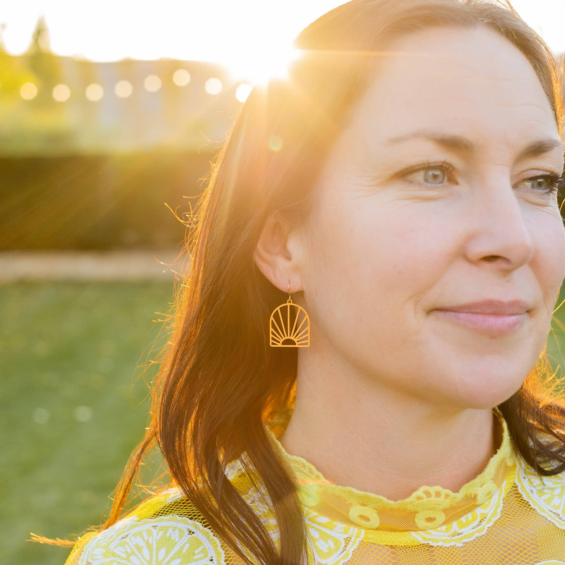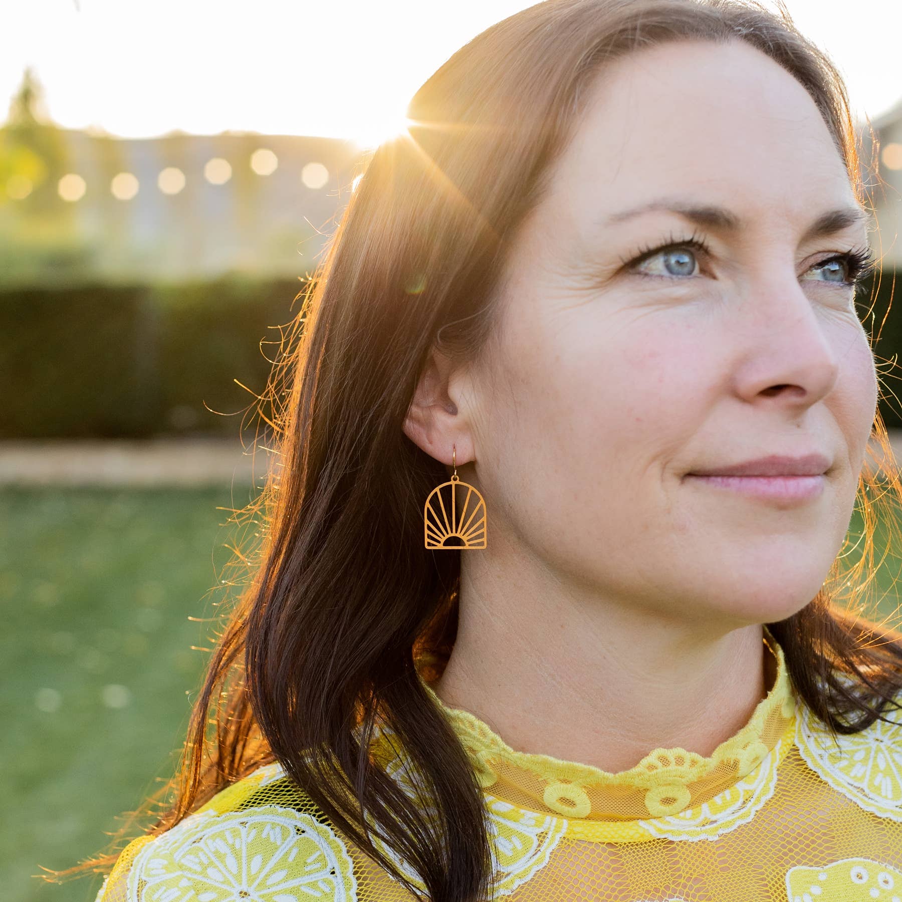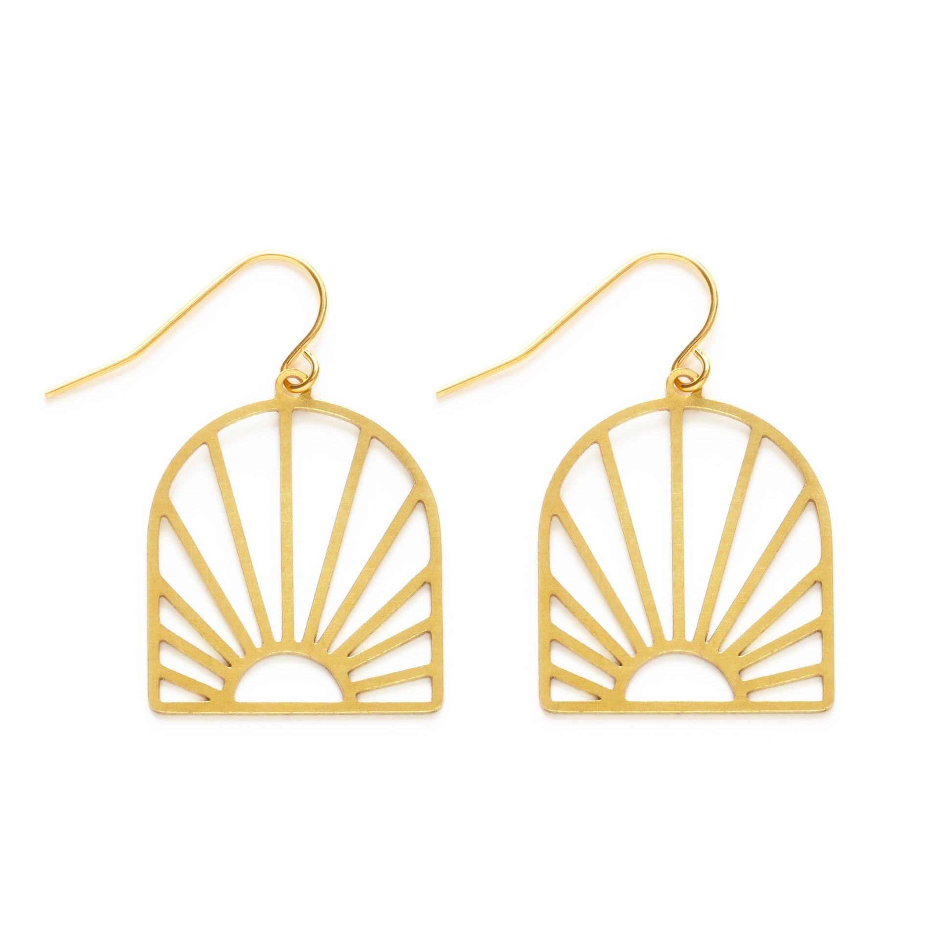-Made of brass with gold plated earwires (lead & nickel free) Measurements: 1" x .85"