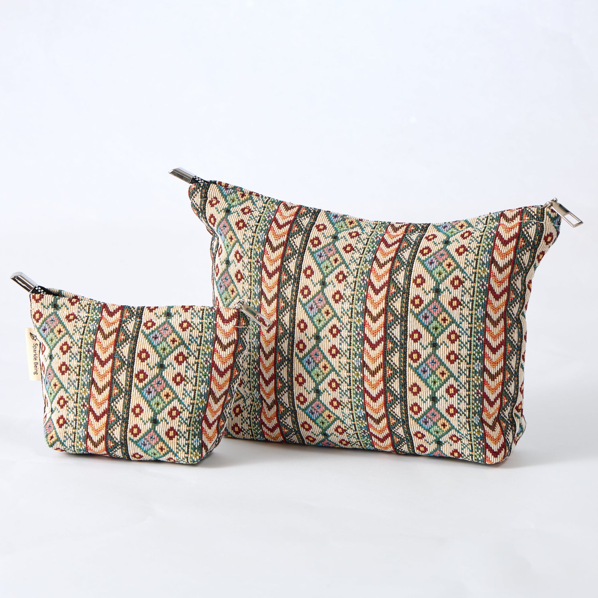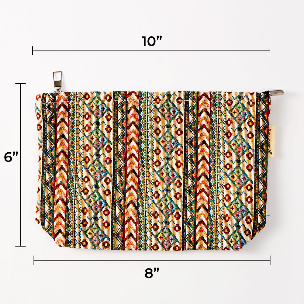 Make packing for vacation easy with this adorable clutter-proof solution to your suitcase, bathroom, or travel bag. Keep your cosmetics and toiletries organized and easily accessible with this beautiful Southwestern-inspired design. With two sizes to choose from, you're sure to find the perfect fit for your storage needs.