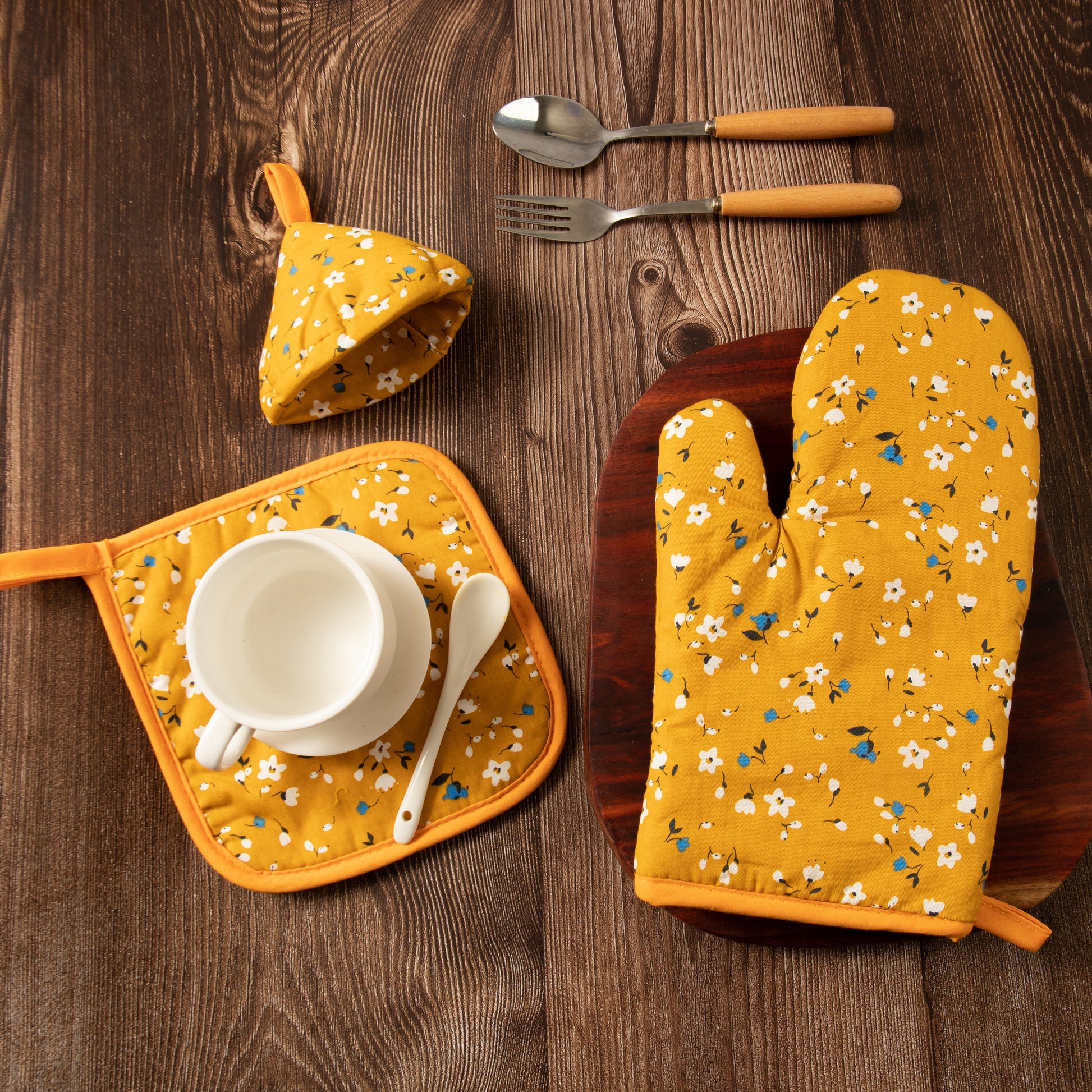 Oven Gloves, Insulation Mat, Pot Cap Hat Anti Scalding Set