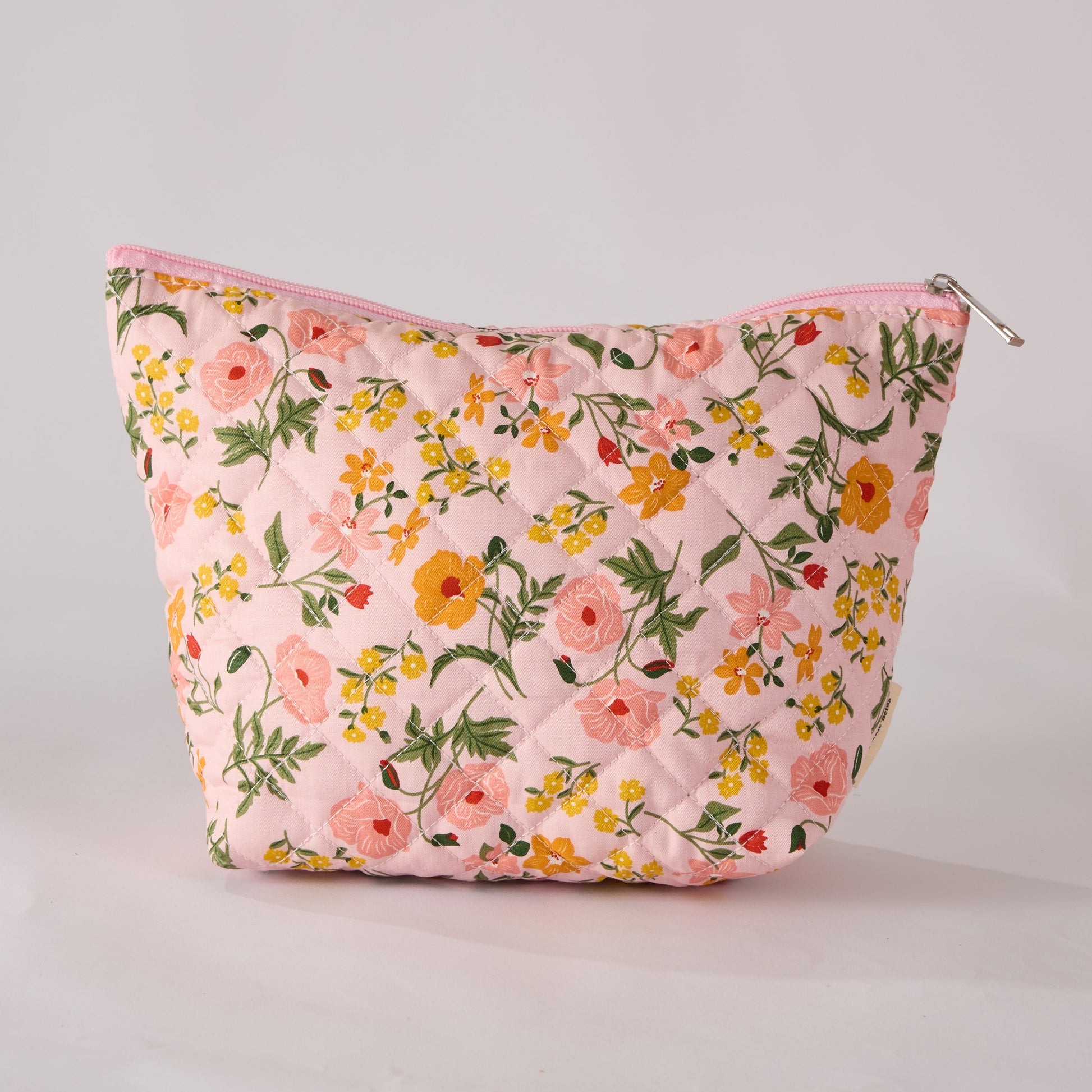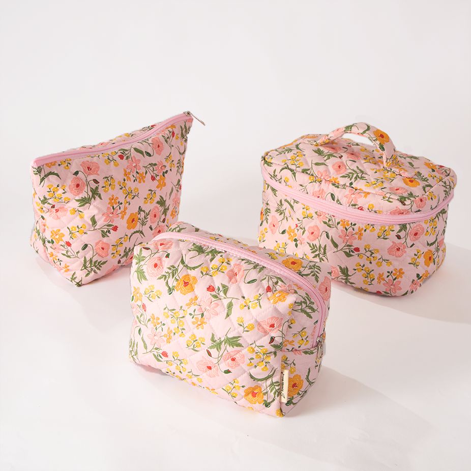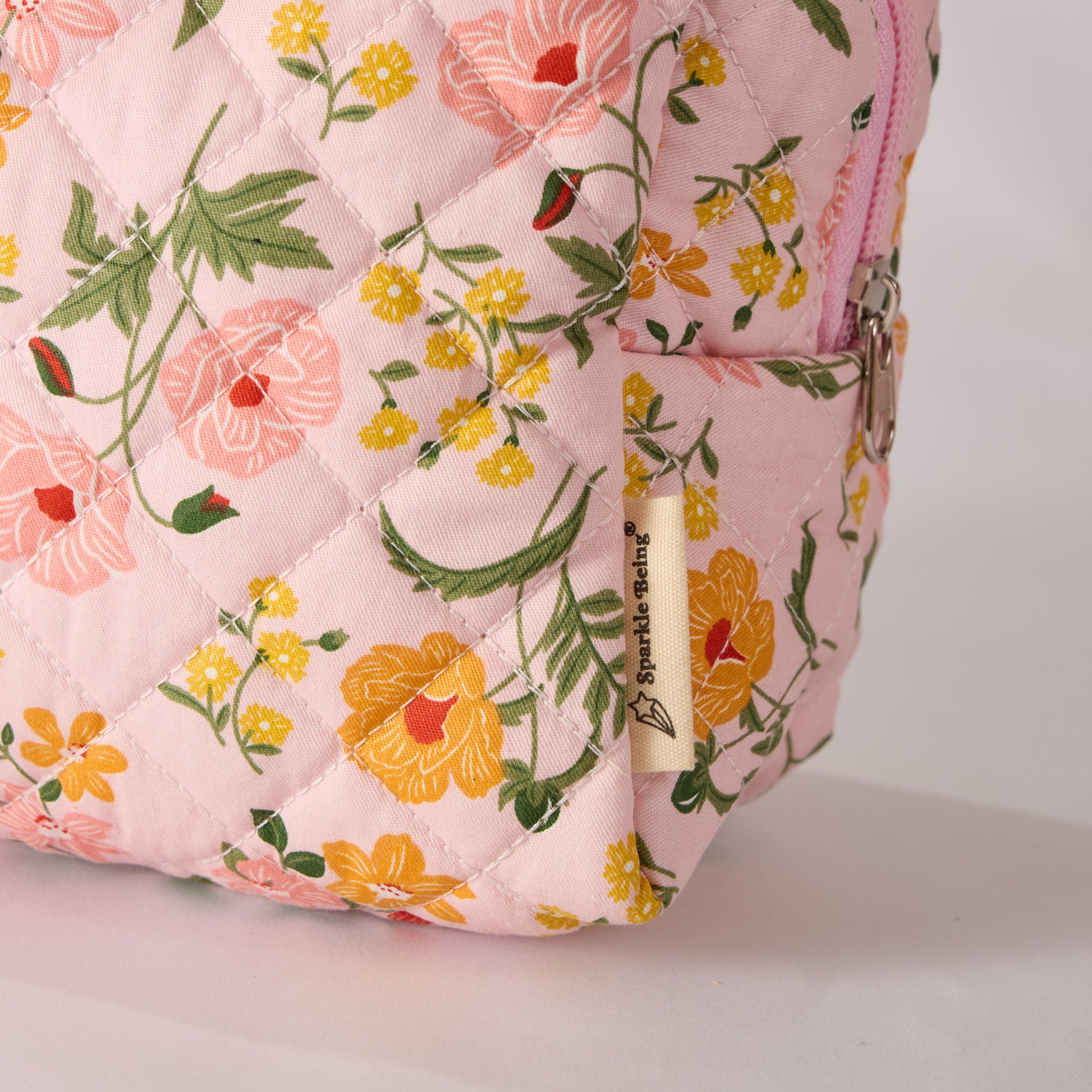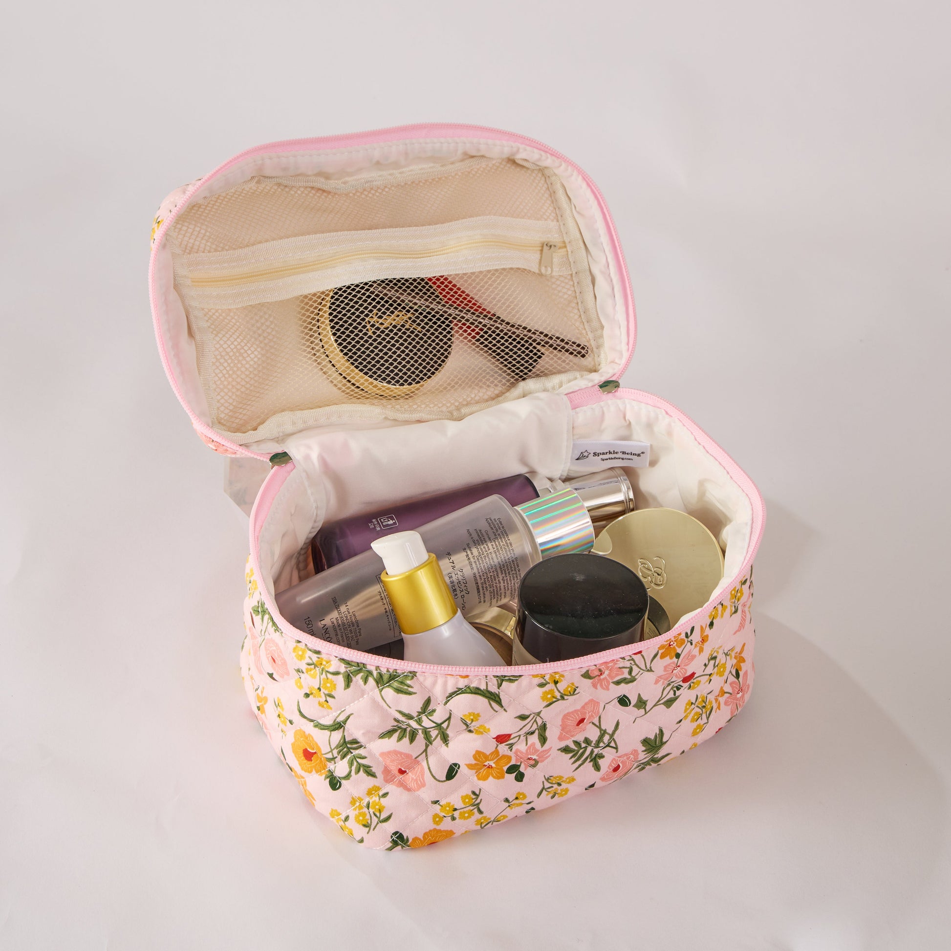 Flower Trail Floral Quilted Makeup Bag - Small Pouch Travel Toiletry Organizer
