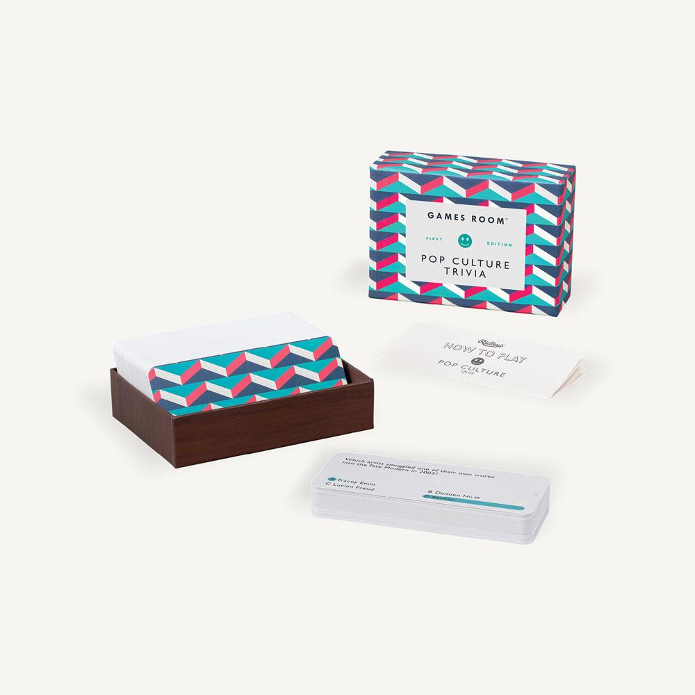 Release your inner culture vulture with the Pop Culture Trivia from the Games Room collection. There are 140 quiz cards covering popular movies, fashion, emojis and more. Entertain your friends and see who is crowned the culture king! Presented in a stylish geometric print box. Full instructions included.
