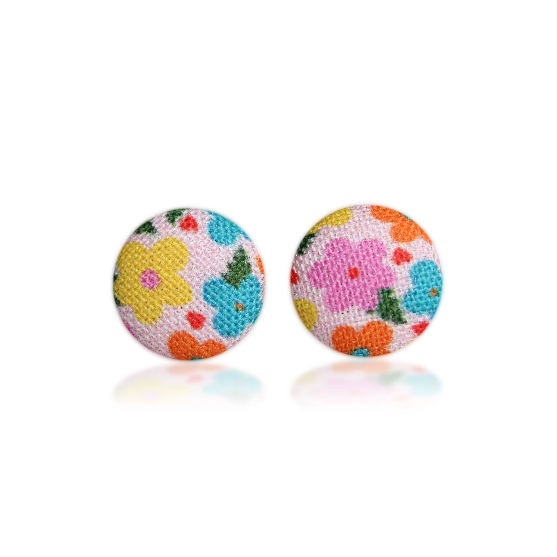 Rachel O's - Multicolor Flowers Fabric Button Earrings